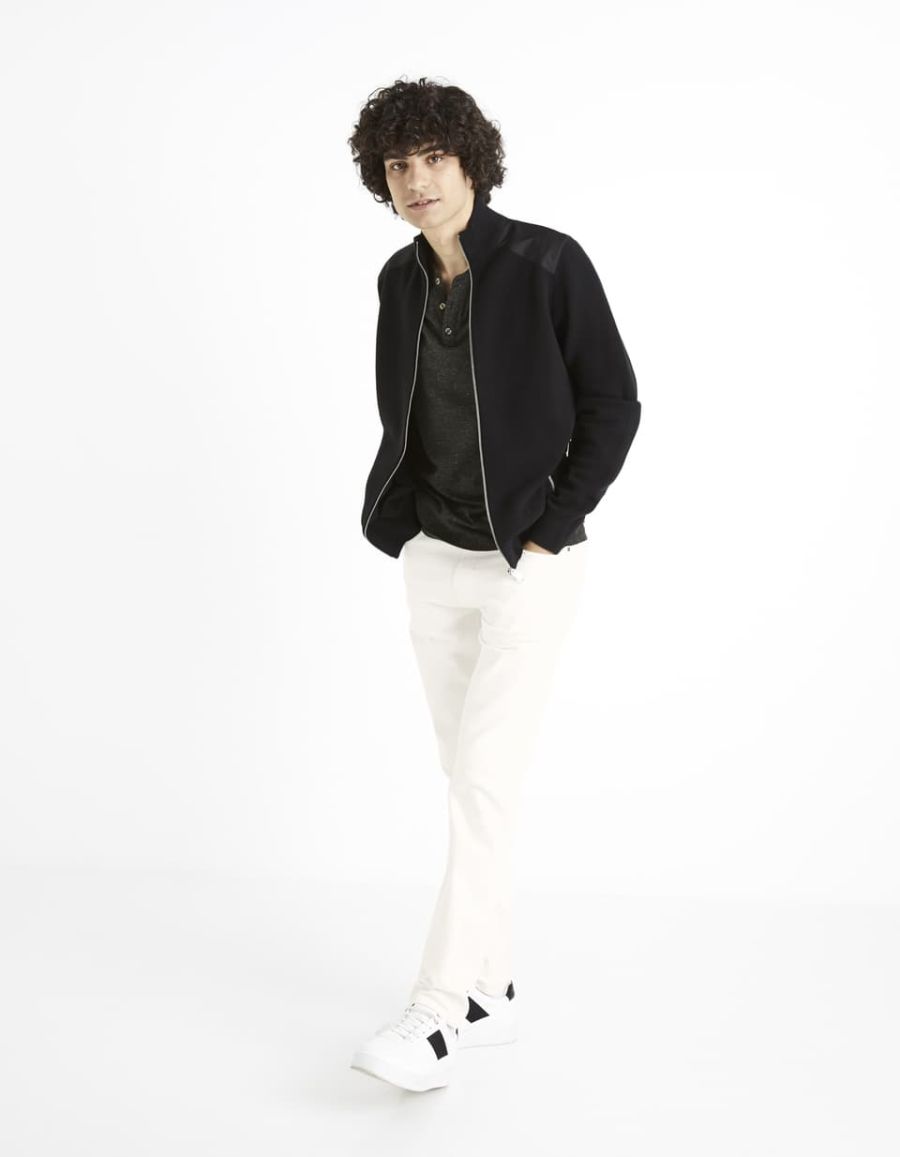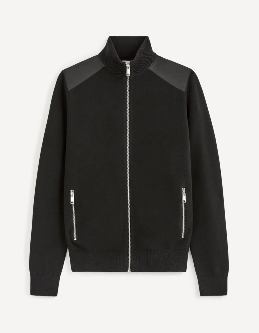Le contraste de matière et de couleur sur les épaules de ce gilet homme lui apporte tout son style. Le cardigan est zippé, en coton mélangé et avec un col montant. Il se portera avec un jean pour un look casual.