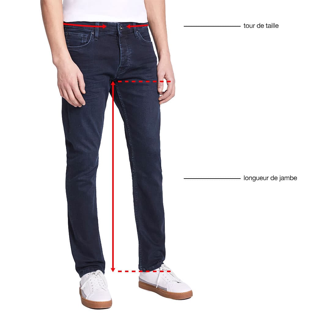 Tour de taille 76 cm Longueur de jambe L30 > 77 cm Longueur de jambe L32 78-82 cm Longueur de jambe L34 83-88 cm |