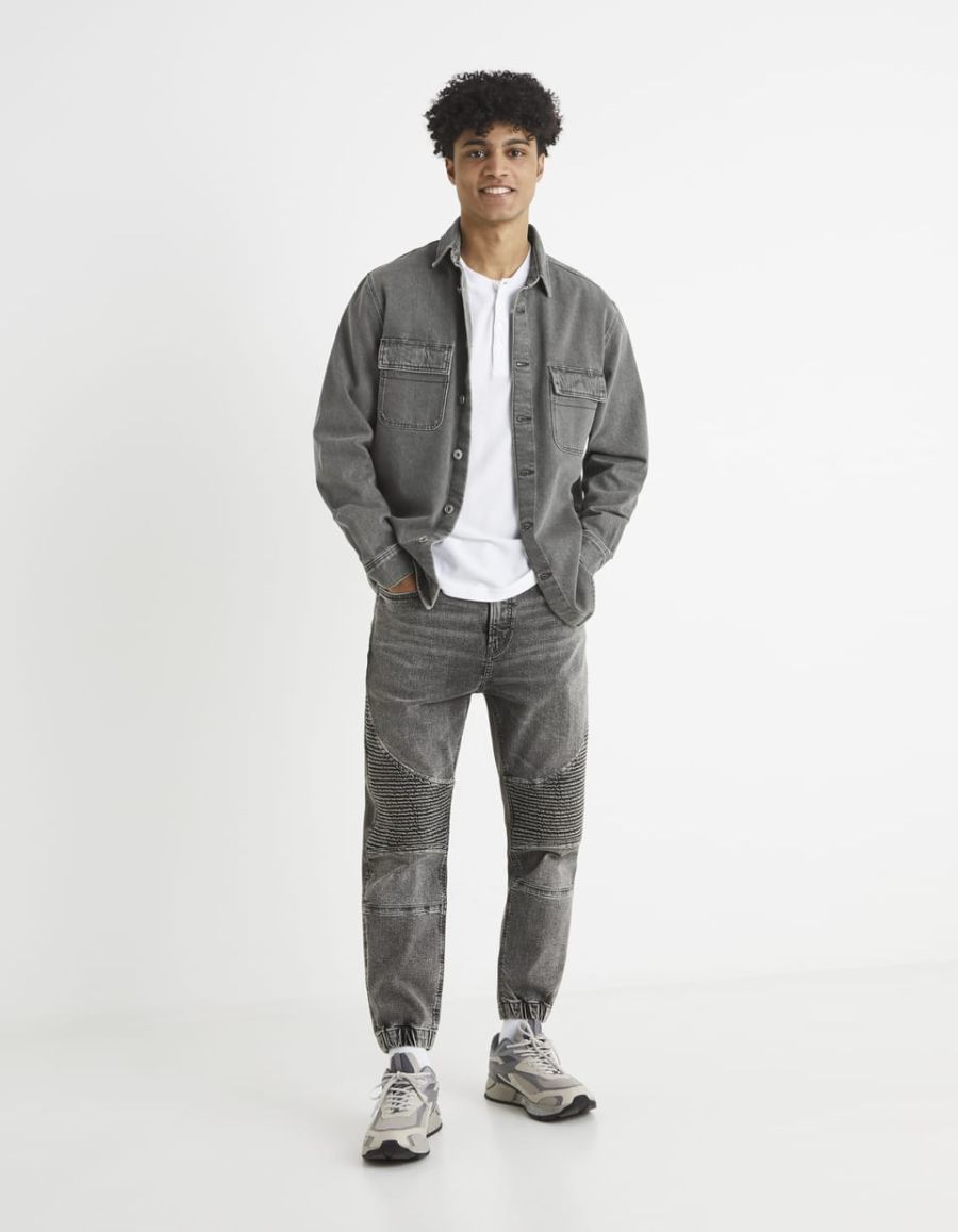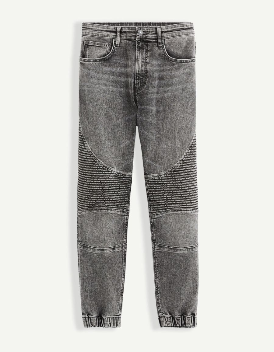 Ce jean biker pour homme, ou jean « motard » est doté d'effets plissés et matelassés aux genoux et de bas élastiqués. Plus que tendance, tous les hommes peuvent s'approprier cette coupe de jean pour se créer divers looks. Il ira parfaitement avec un t-shi