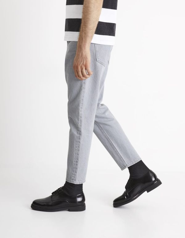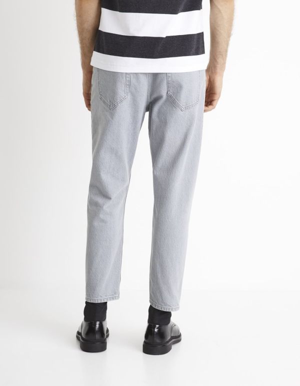 Vous allez adorer porter ce jean gris homme à la coupe relax très confortable et avec une longueur 7/8ème. Le jean est 100 % coton, avec un coloris gris. Vous l'assortirez à un t-shirt, sur lequel vous pourrez ajouter une chemise ouverte.
