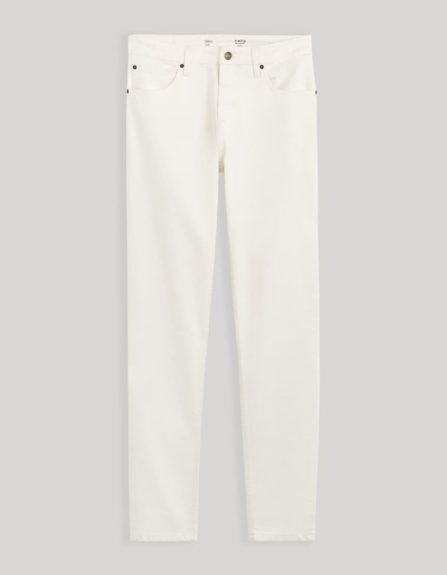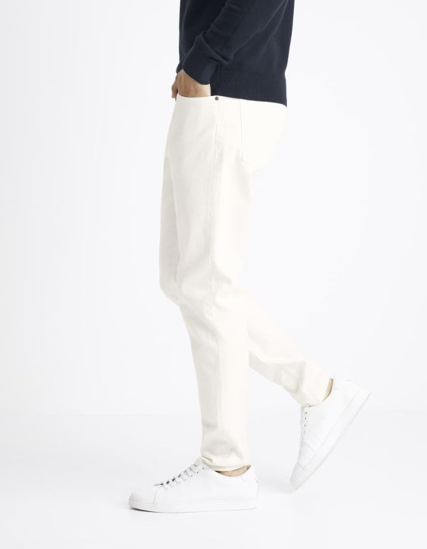 Le jean homme beige accompagnera parfaitement un pull en maille ou un sweat d'une couleur foncée. La coupe du jean C25 est slim en coton stretch et braguette zipée. Il est également équipé de cinq poches.