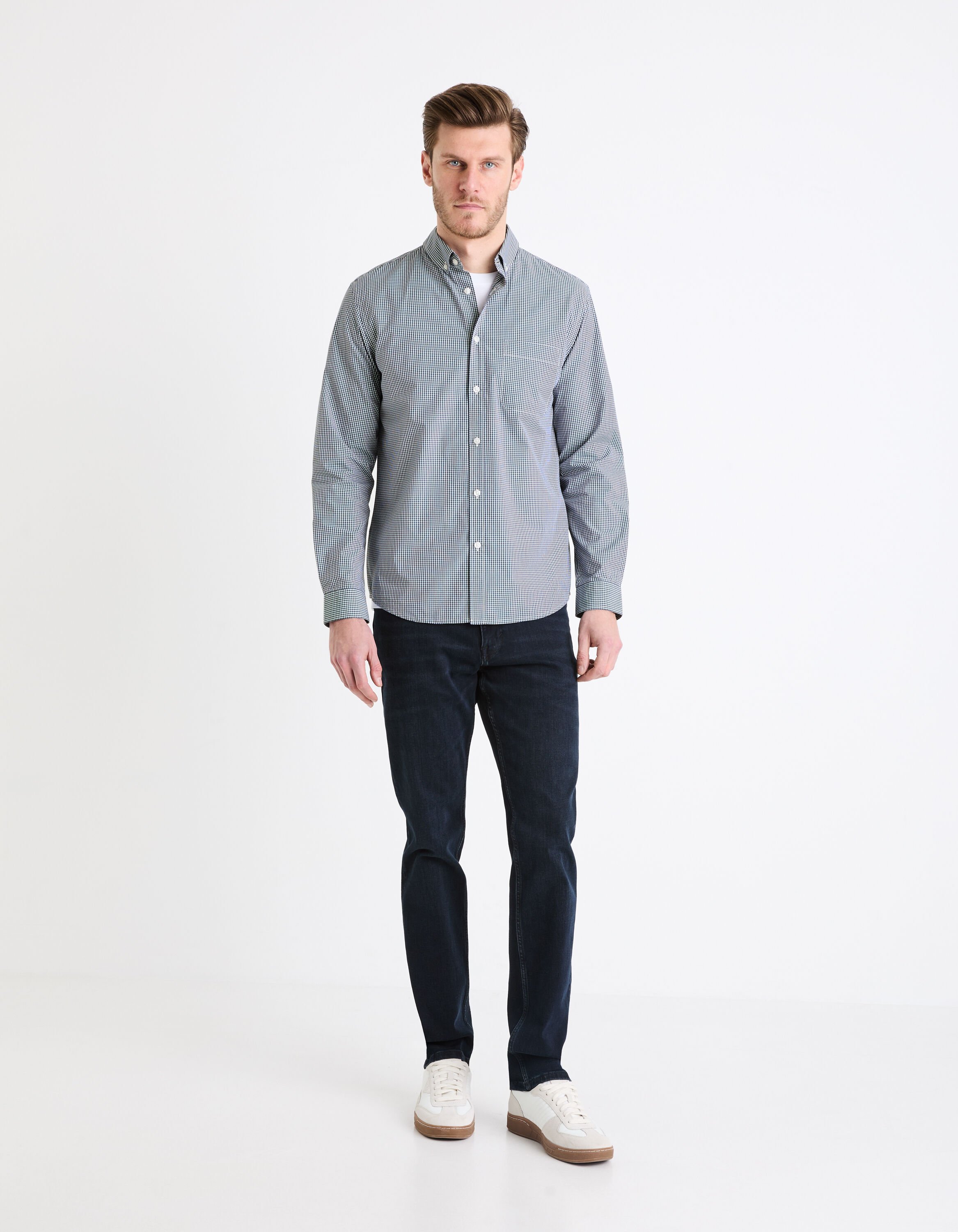 - Associez-le avec une chemise ajustée et des baskets pour un look impeccable