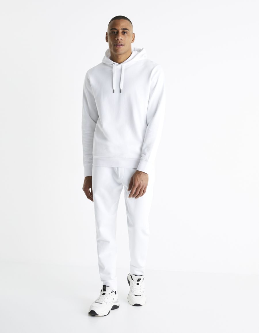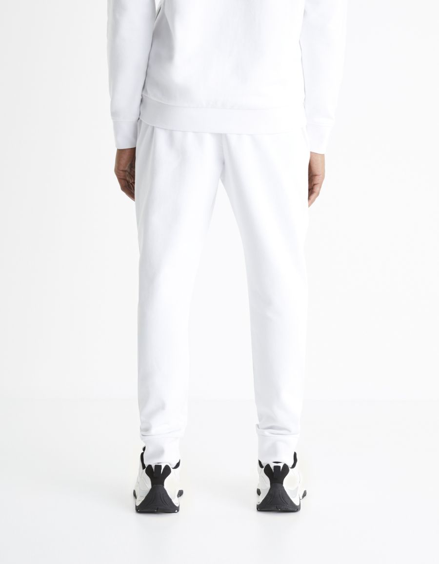 Adoptez le confort du pantalon de jogging homme à la composition 100 % coton. Vous le porterez tout simplement avec un t-shirt et un sweat. La taille, complétée par un cordon de serrage, et le bas des jambes sont élastiqués.
