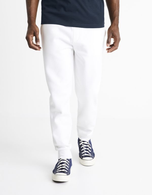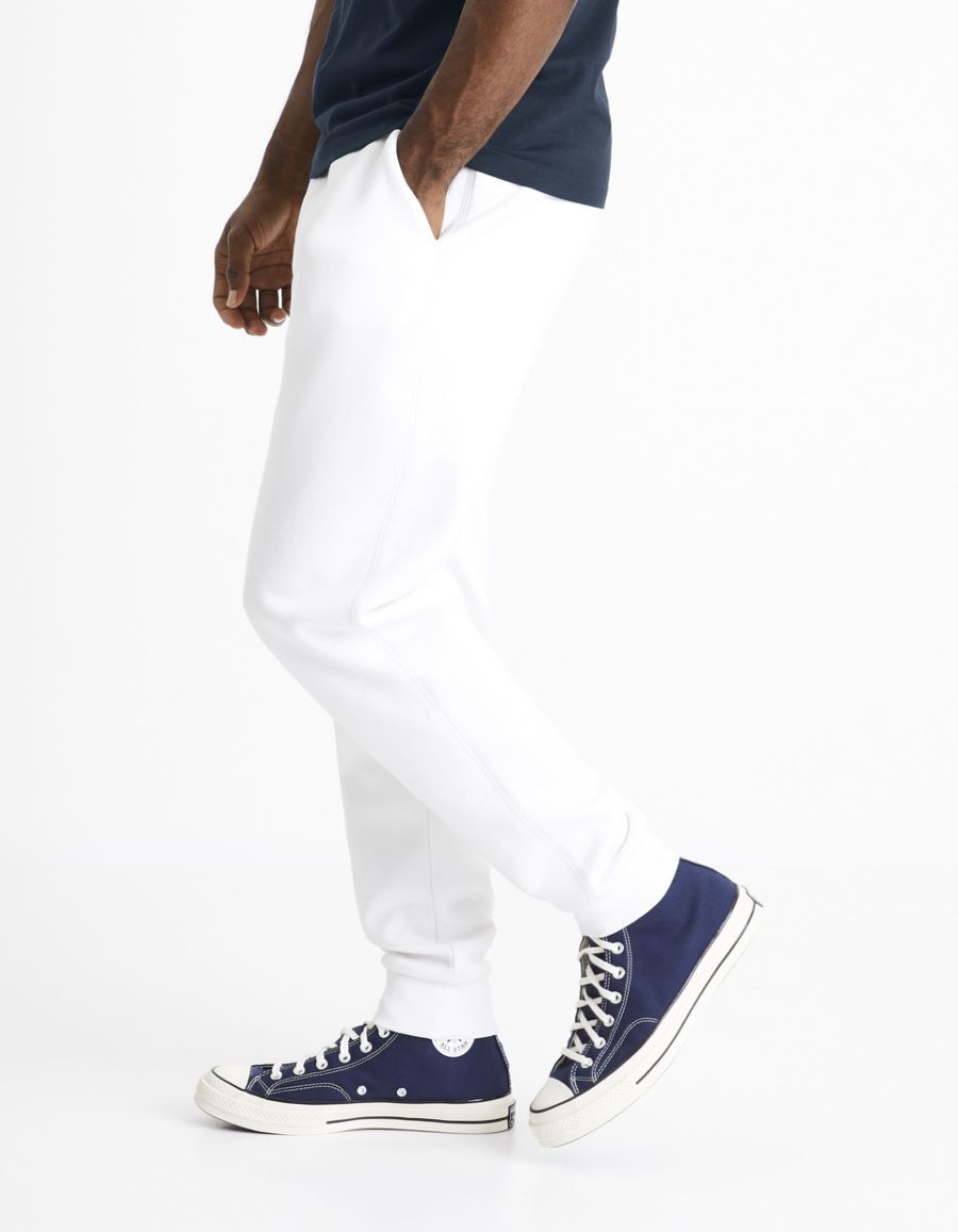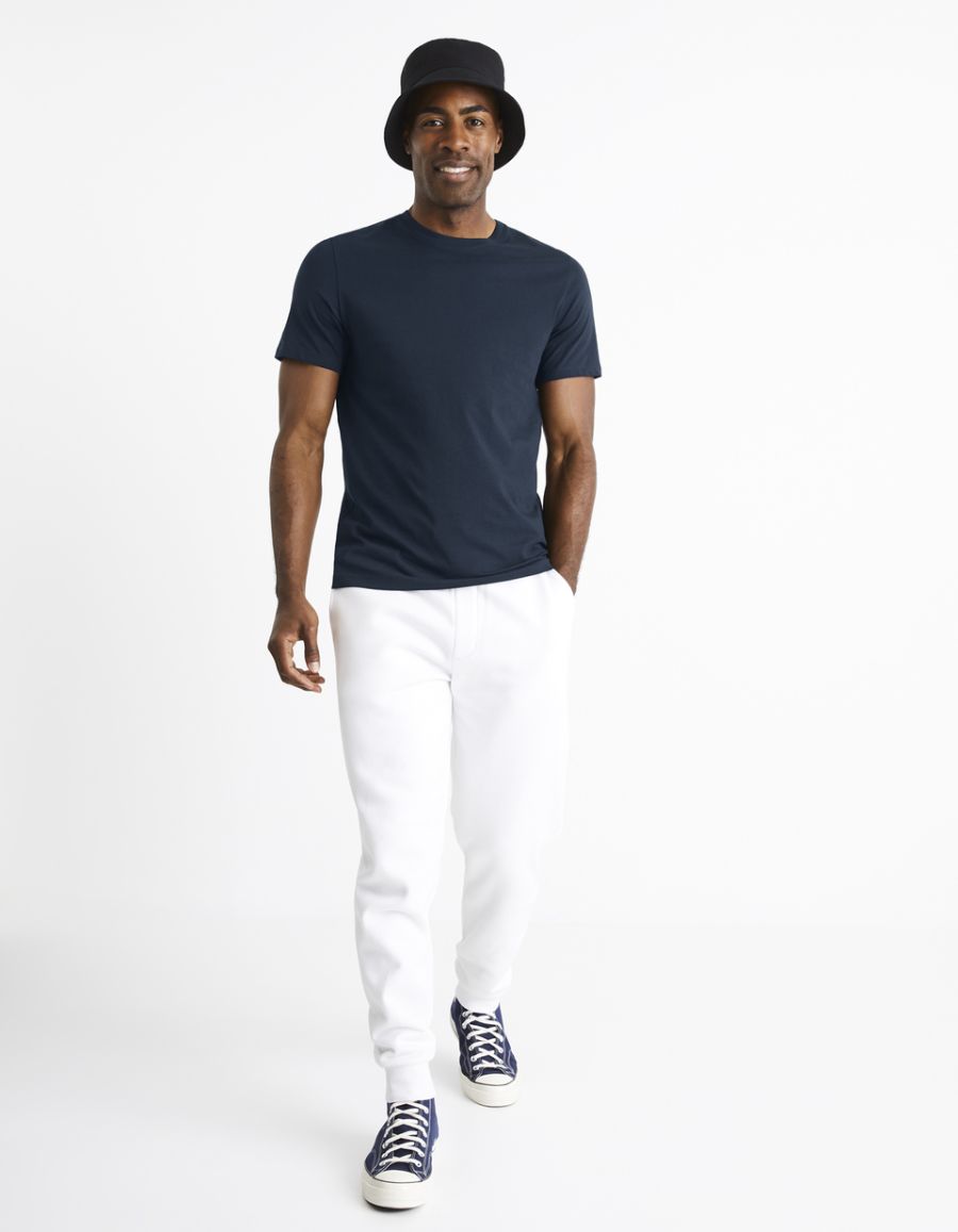 Confort absolu garanti avec le jogging homme basique en maille. Ce jogging en coton mélangé a une taille élastiquée, un cordon de serrage, des poches latérales et une poche arrière. Il pourra tout simplement être porté avec un t-shirt.
