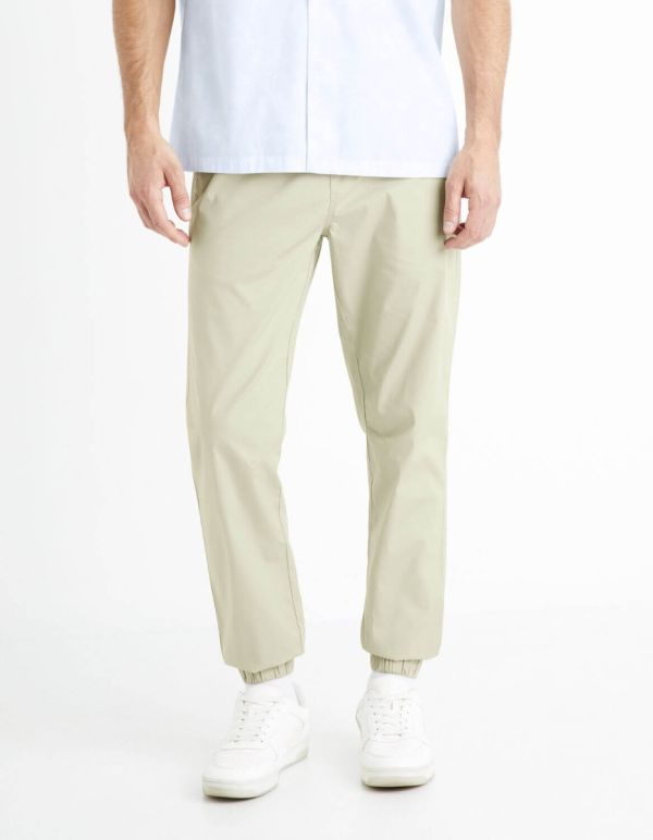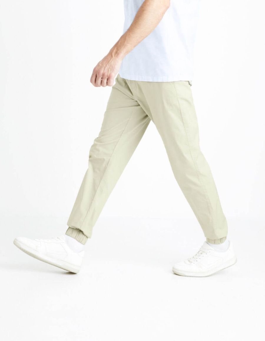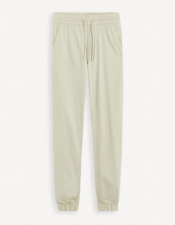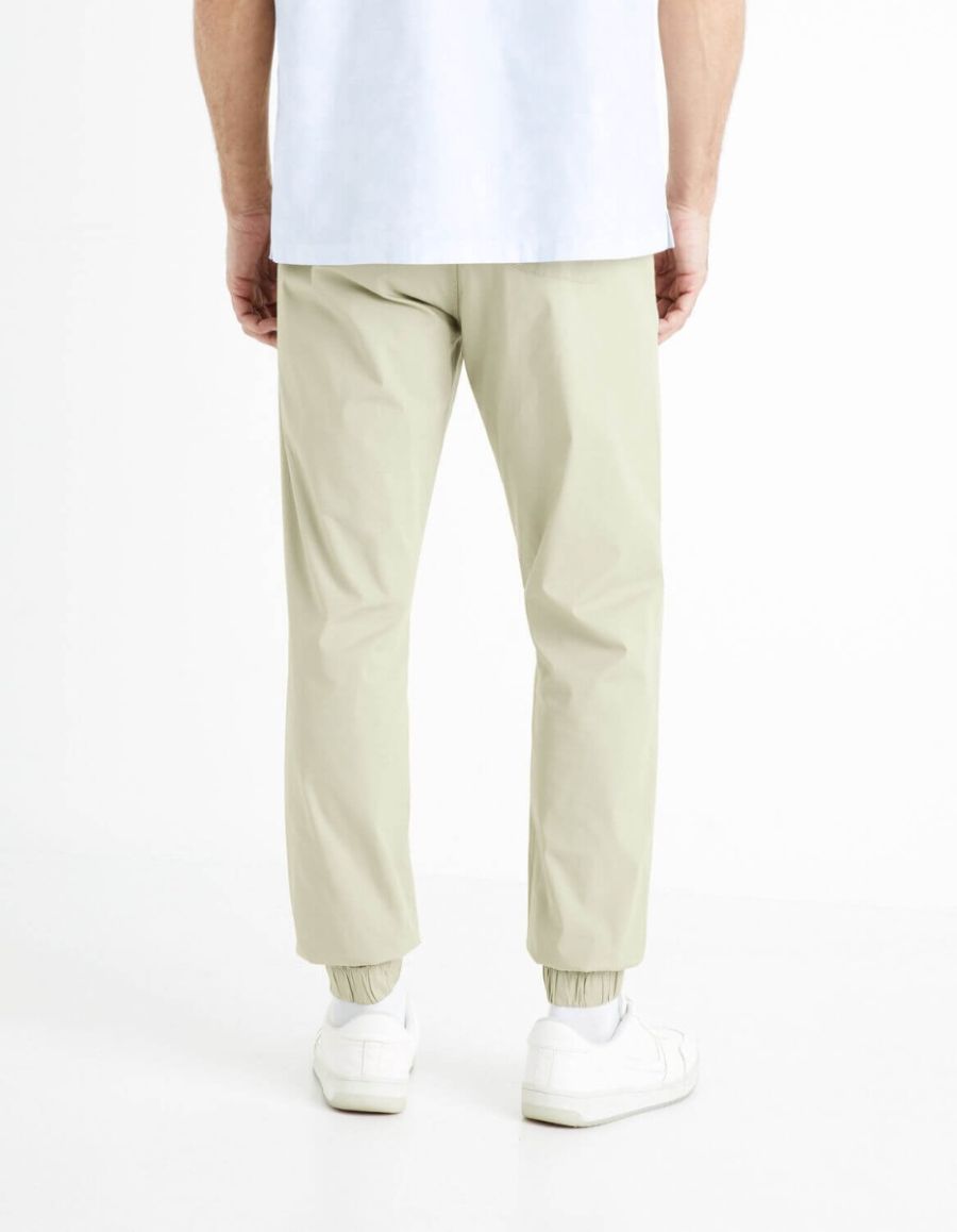 Jogging stretch vert pour homme, doté d'une taille et d'un bas élastiqués ainsi que d'une jambe fuselée. Ce pantalon allie parfaitement confort et style, vous offrant une liberté de mouvement optimale. Adoptez ce Jogger stretch pour un style contemporain