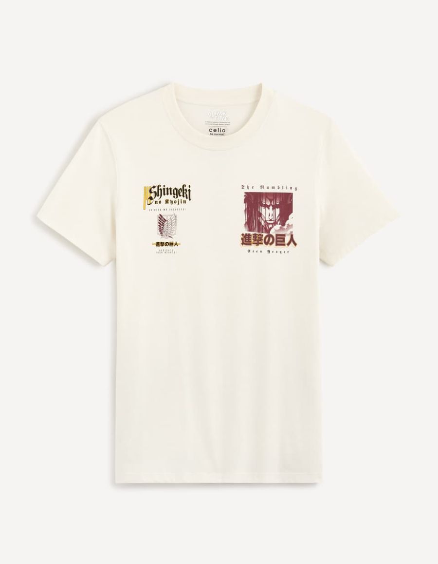 L'Attaque des Titans revient chez celio ! Et cette fois-ci, on voit les choses en grand : designs exclusifs et dessins officiels de l'auteur. La collection met en avant les plus grands moments du manga du 1er au 32ème tome !Ce t-shirt blanc cassé pour ho