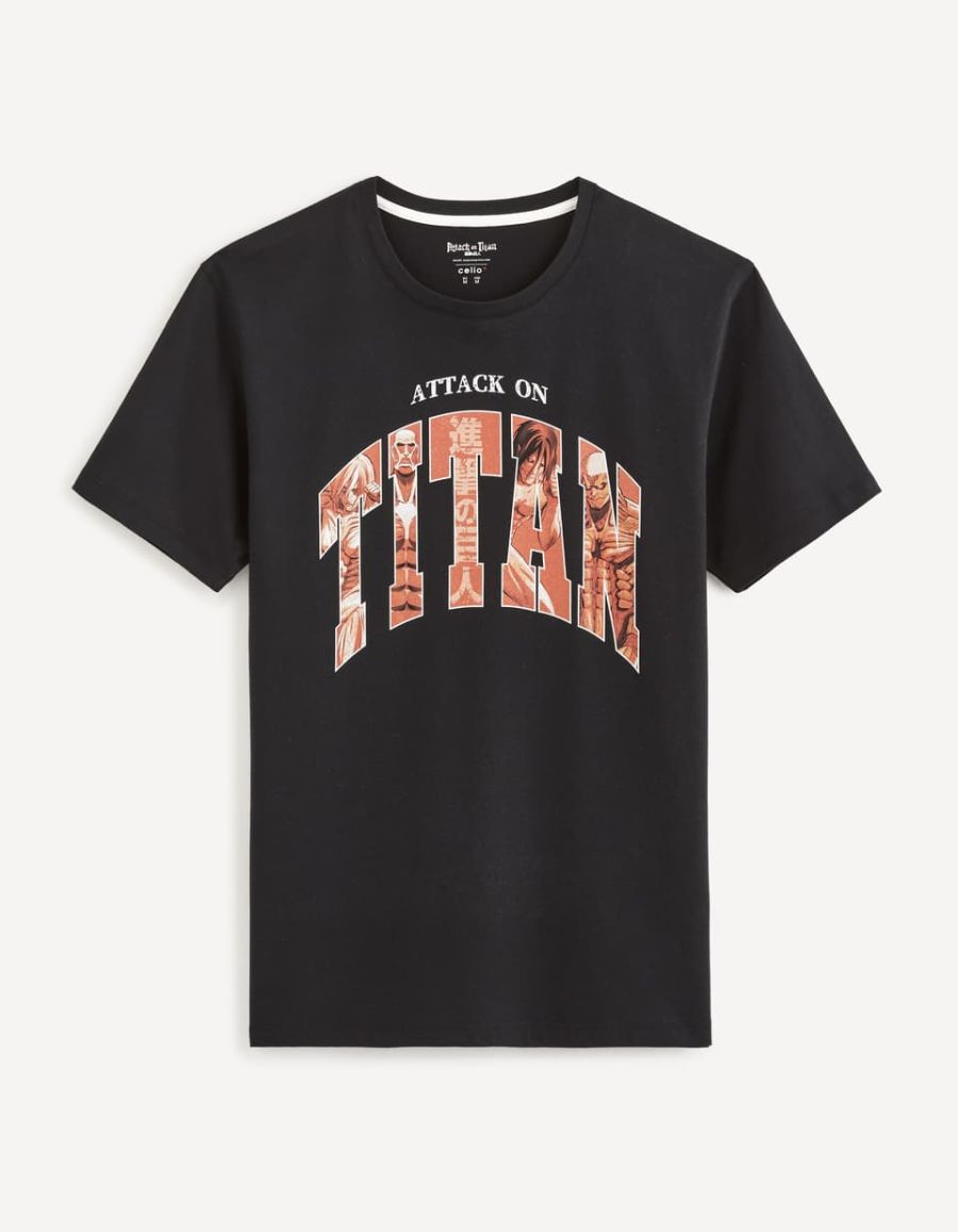 Le titre anglais de l'oeuvre trône sur ce tee-shirt noir 100% coton, décoré par les titans les plus importants de la première partie du manga ! On retrouve ainsi le Titan Colossal, le Titan Cuirassé, le Titan Féminin et le Titan Assaillant, cachés dans le