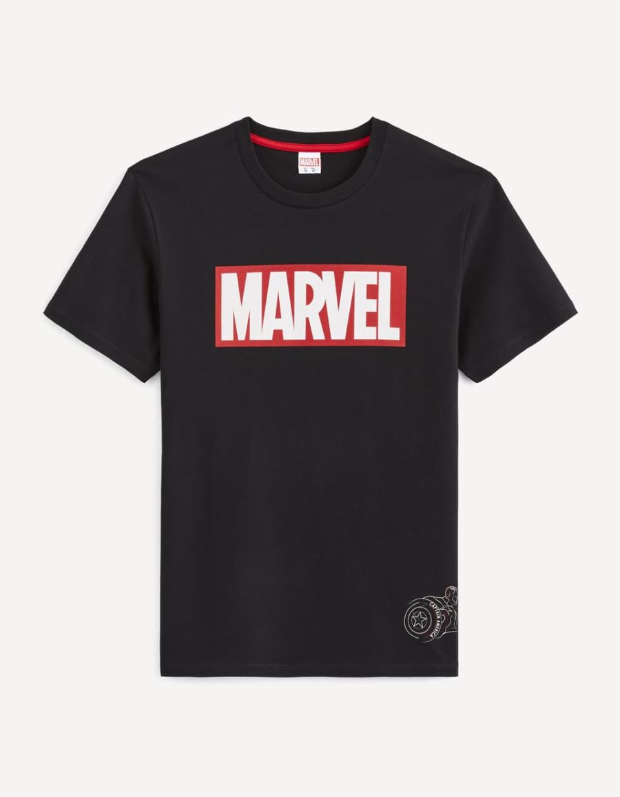 Le logo Marvel arborde fièrement ce t-shirt noir, complété par Captain America dessiné discrètement en bas du t-shirt. Sur le dos, l'impressionnant bouclier montrera votre appartenance à l'équipe des Avengers.