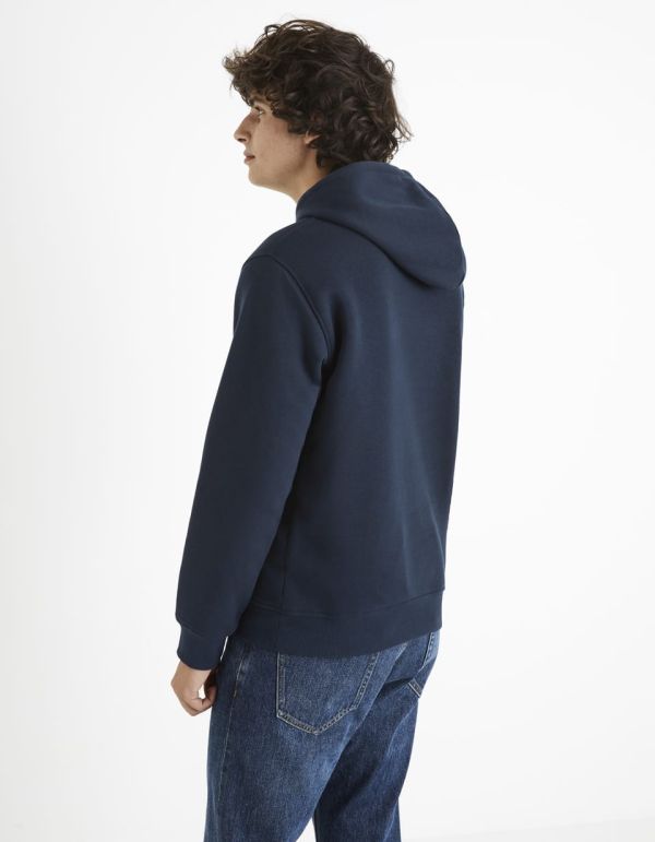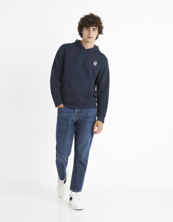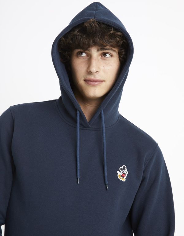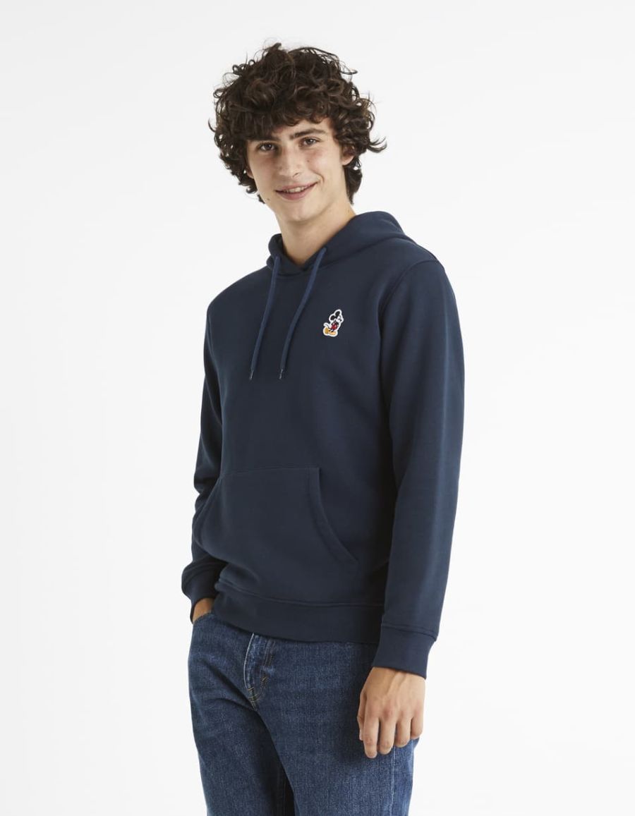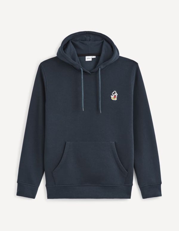 Sweat marine à capuche pour homme, col rond, imprimé à l'éffigie de Mickey Mouse, un personnage de fiction américain appartenant à l'univers Disney, apparaissant principalement dans des dessins animés, dans des bandes dessinées et des jeux vidéo. Idéal av