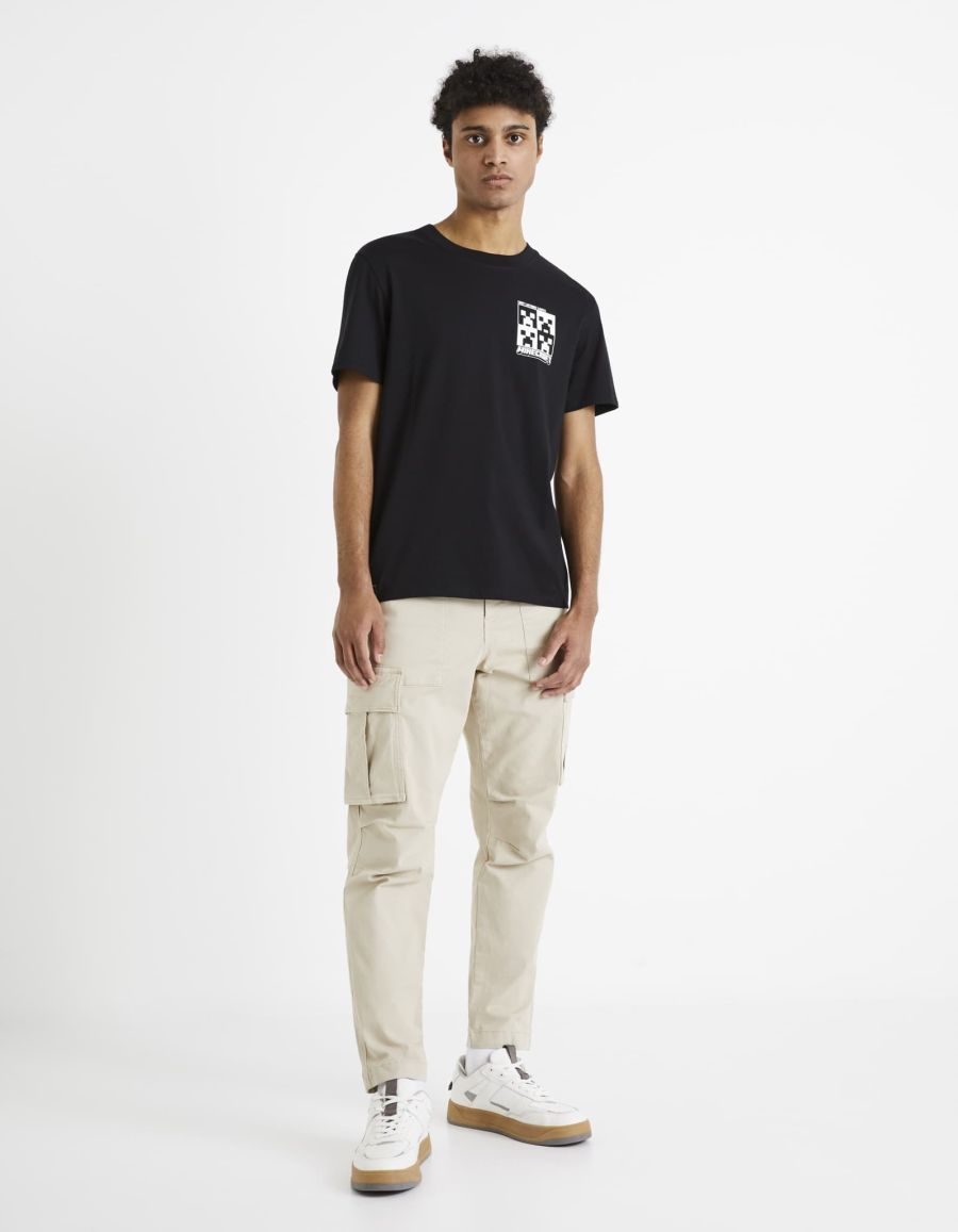 Minecraft arrive chez celio, célèbre jeu vidéo de type aventure et créativité avec des construction libre. Découvrez les designs revisités avec ce t-shirt noir col rond 100% coton pour homme, avec un imprimé devant. Il sera parfait avec un jean et des bas