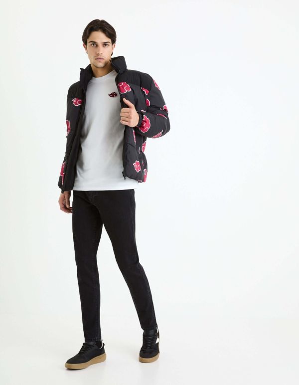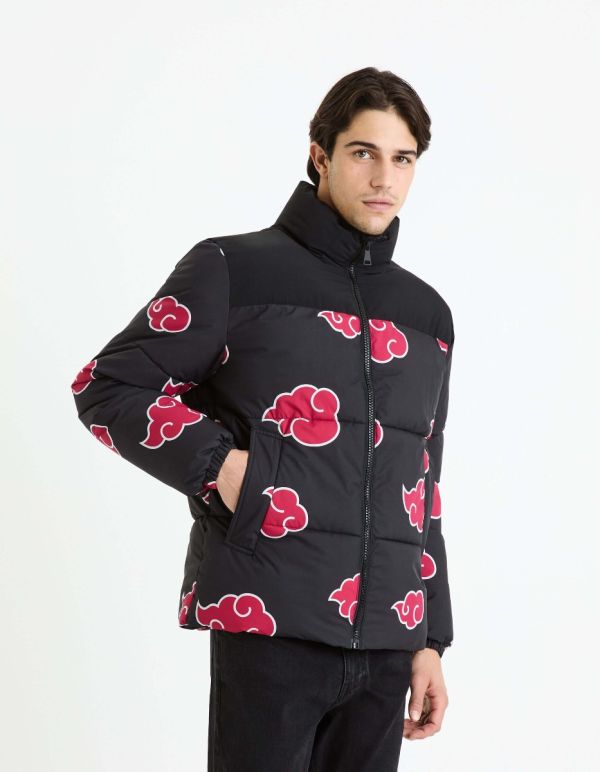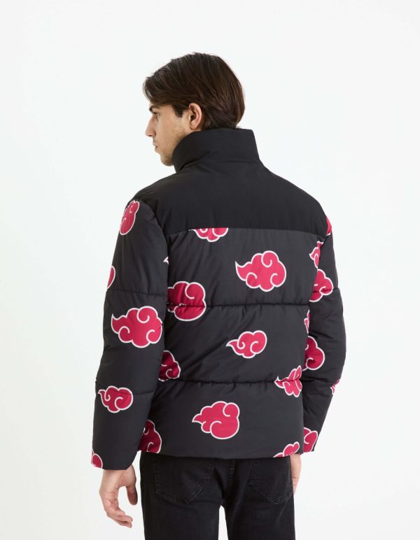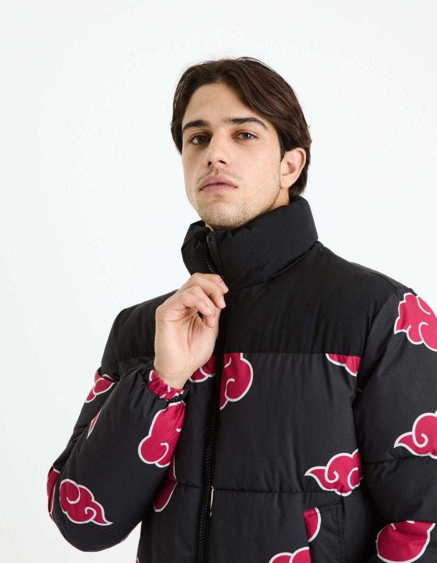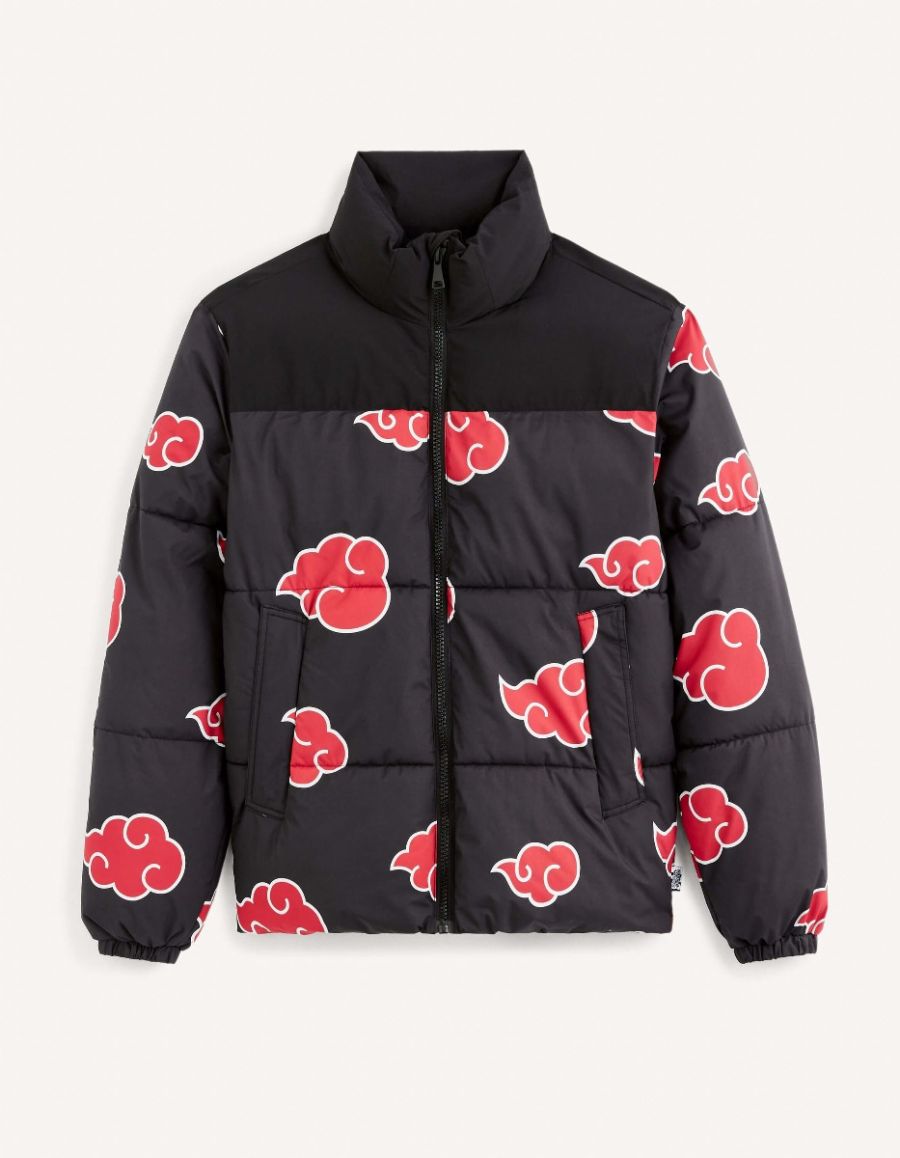 Blouson noire pour homme, inspirée du manga emblématique Naruto Shippûden. Le blouson est orné de motifs captivants représentant les fameux nuages rouges, symboles emblématiques de l'Akatsuki.
