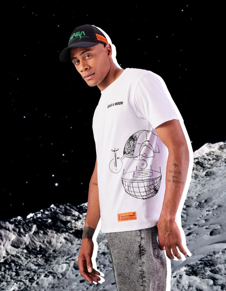 Vous avez déjà rêvé de devenir astronaute, marcher sur la lune ou de flotter en apesanteur aux côtés des étoiles. Alors vous devriez adorer ce t-shirt blanc NASA sur lequel on retrouve le dessin d’une Lune en construction avec la mention "Build the moon"