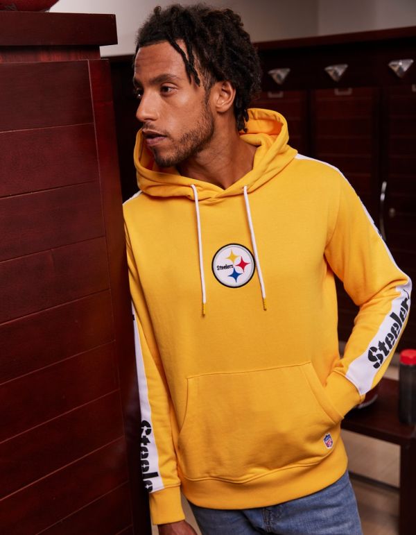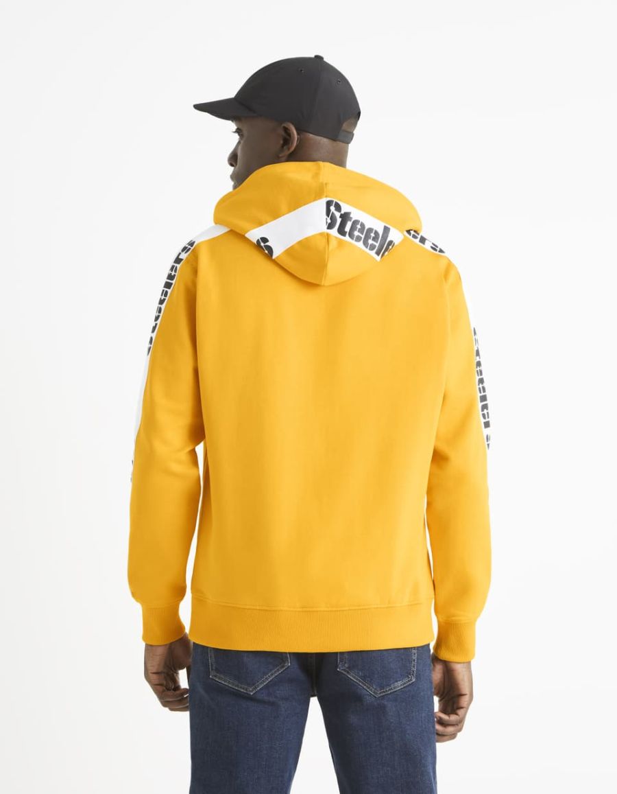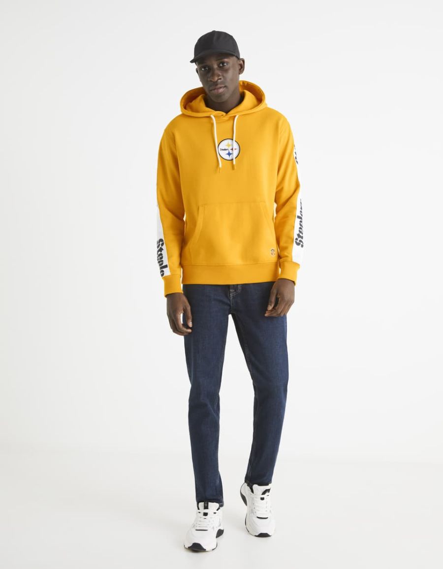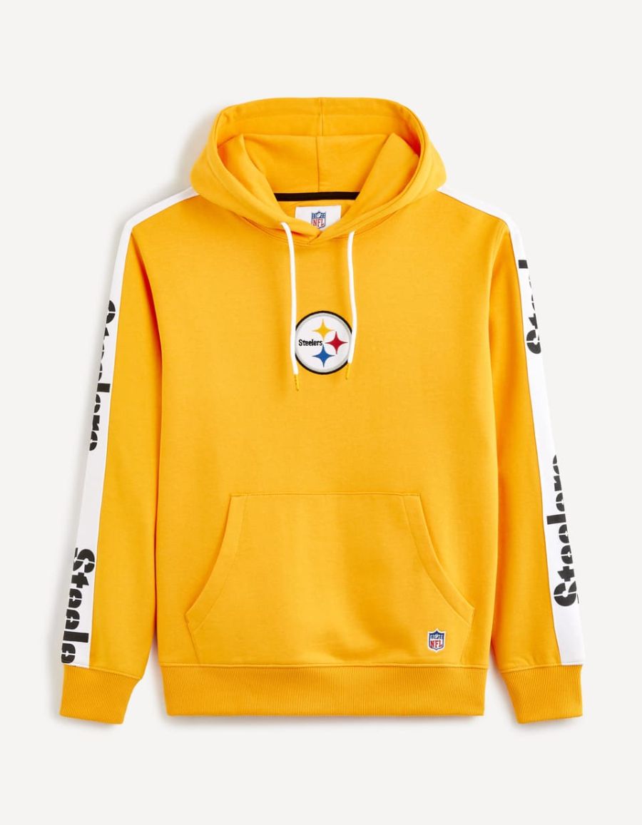 Avis à tous les fans de l'équipe des Steelers ! celio vous propose le sweat idéal pour suivre la saison du Super Bowl et supporter votre équipe préférée comme il se doit. Ce sweat jaune en coton mélangé possède une poche ventrale et une capuche avec cordo