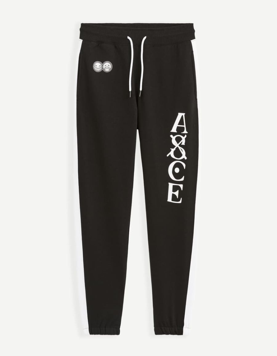 Le pantalon jogging noir de la collection One Piece est dédiée au grand frère de Luffy, Ace aux Poings Ardents ! Il reprend plusieurs éléments propres à Ace: la jambe gauche représente son tatouage ASCE avec le S barré, l'Ace Jolly Roger est présent sur l
