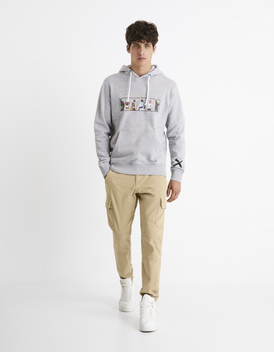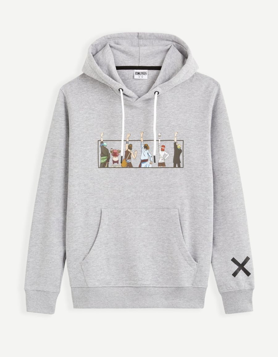 Sur ce sweat gris pour homme de la collection One Piece, retrouvez tout l'équipage de Luffy dans l'ordre suivant: Zoro, Chopper, Usopp, Luffy, Nami et Sanji. Une bande blanche orne tout l'arrière du vêtement. Côté détails, ce hoodie pour homme possède une