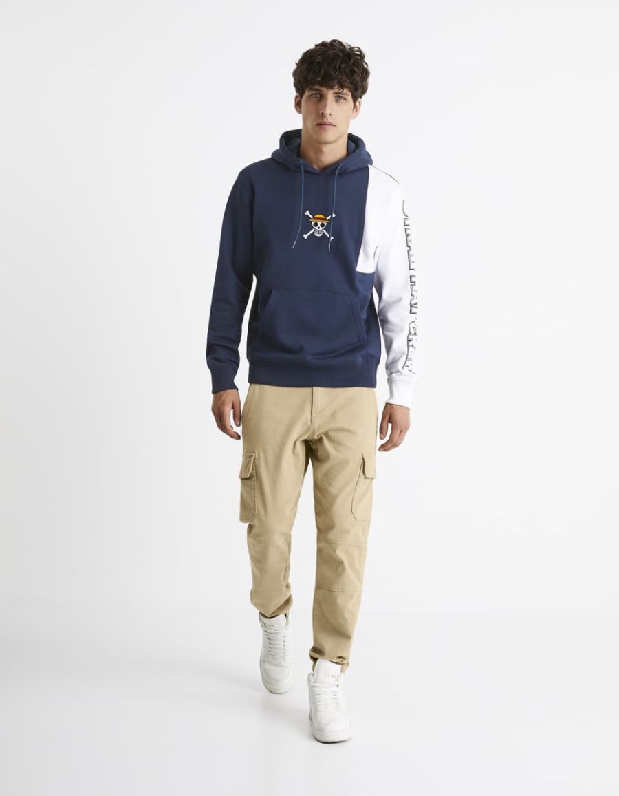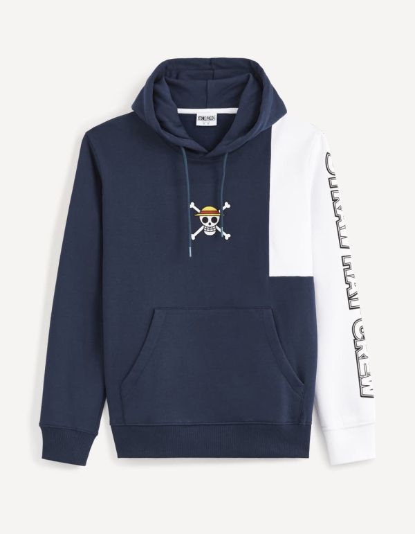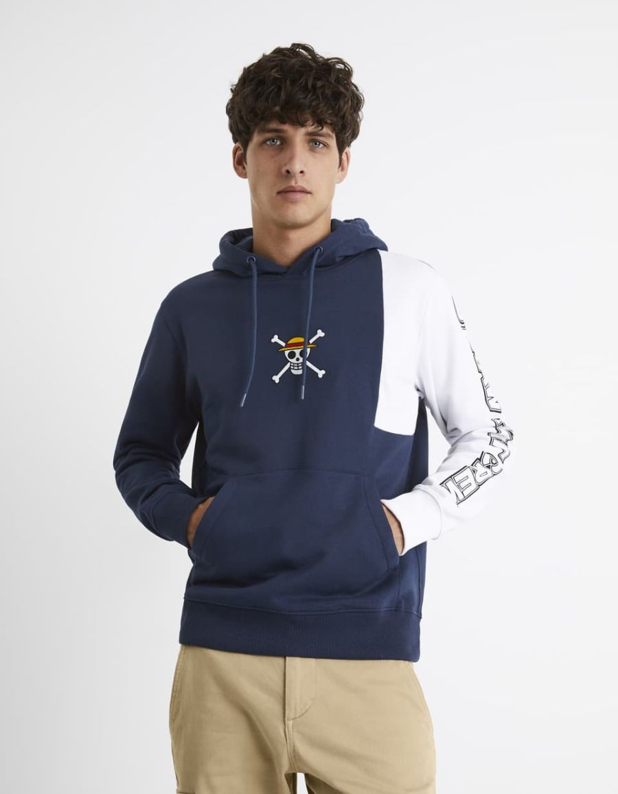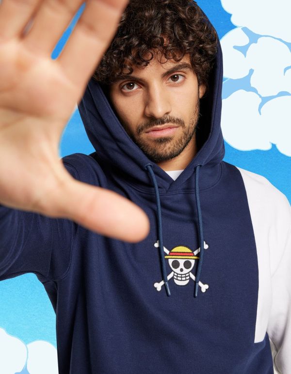 Ce sweat bleu marine et blanc est un indispensable pour tout fan de Luffy et son équipage. Le motif représentant l’équipage, ainsi que l’inscription Strawhat Crew sur la manche gauche en font une pièce unique en son genre ! Ce hoodie pour homme possède un
