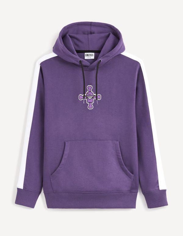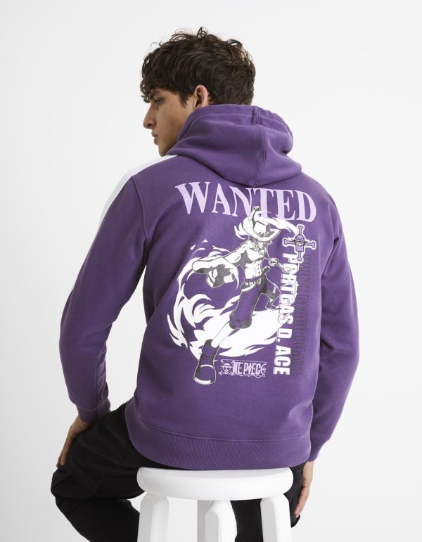 Lorsqu’on choisit la vie de pirate, on peut s’attendre à être recherché par le Gouvernement Mondial. La mention Wanted surplombe Ace à l’arrière de ce sweatshirt violet pour homme, décoré d’une bande blanche le long des manches. On y retrouve également so