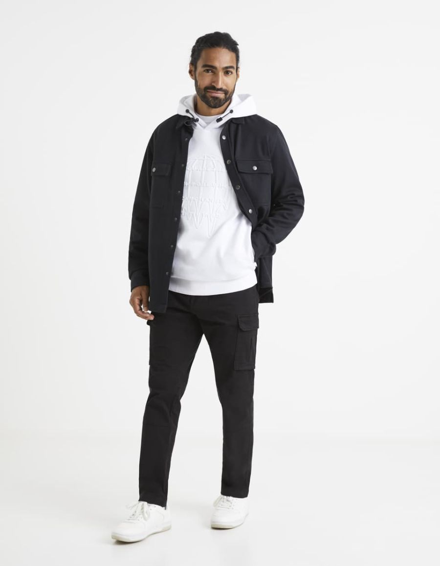 Ce pantalon poche cargo avec bas élastiqué pourra être porté dans des tenues casuals, simplement associé à un pull, un t-shirt, une chemise et une paire de baskets. Inspiré du vestiaire militaire, il pourra également être associé a des bottines pour homme