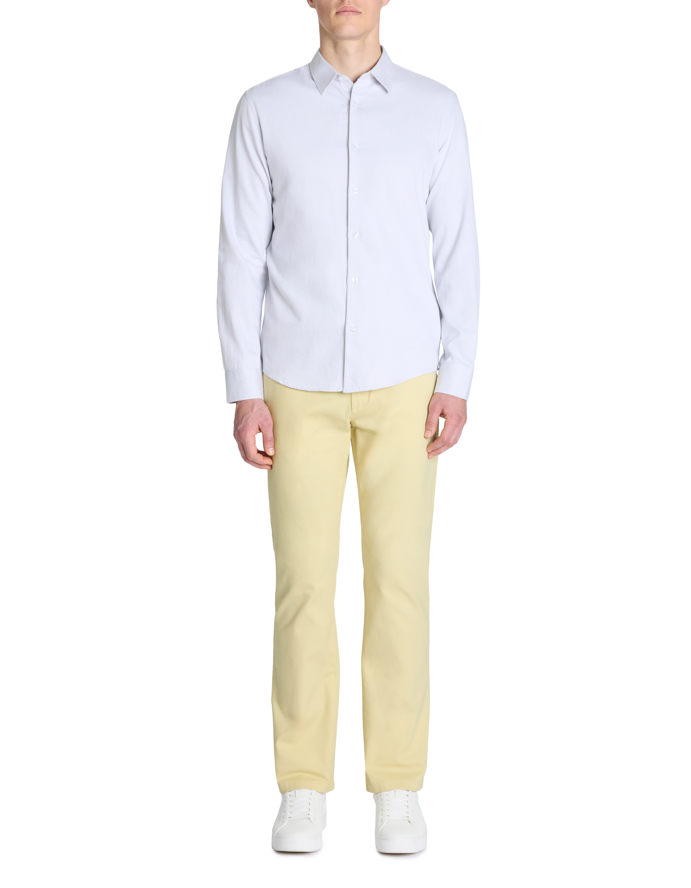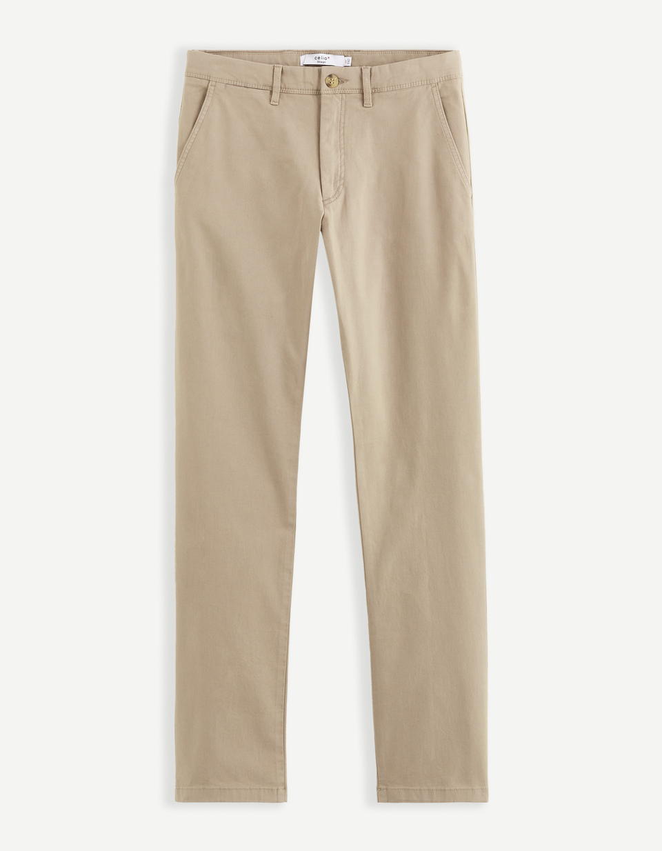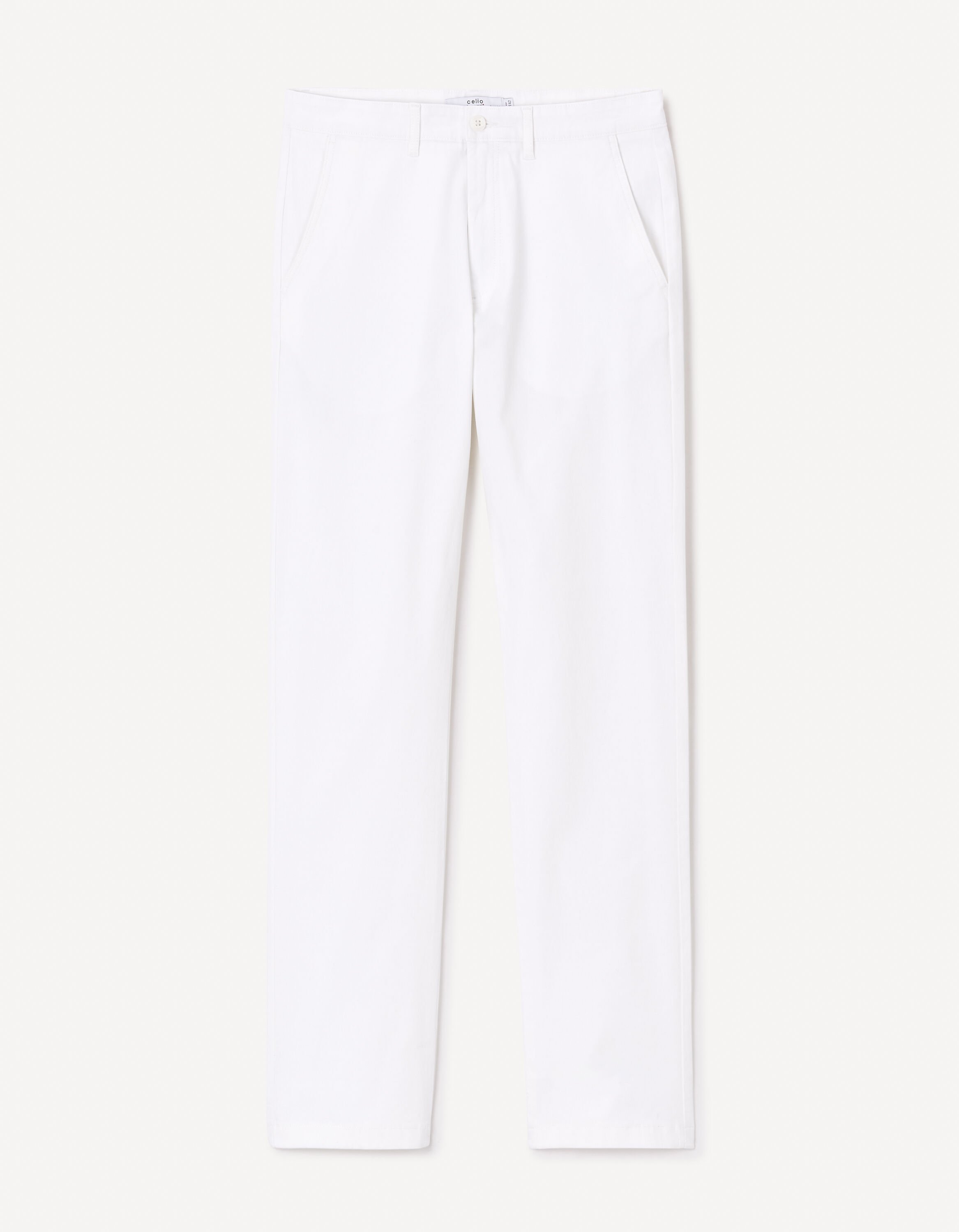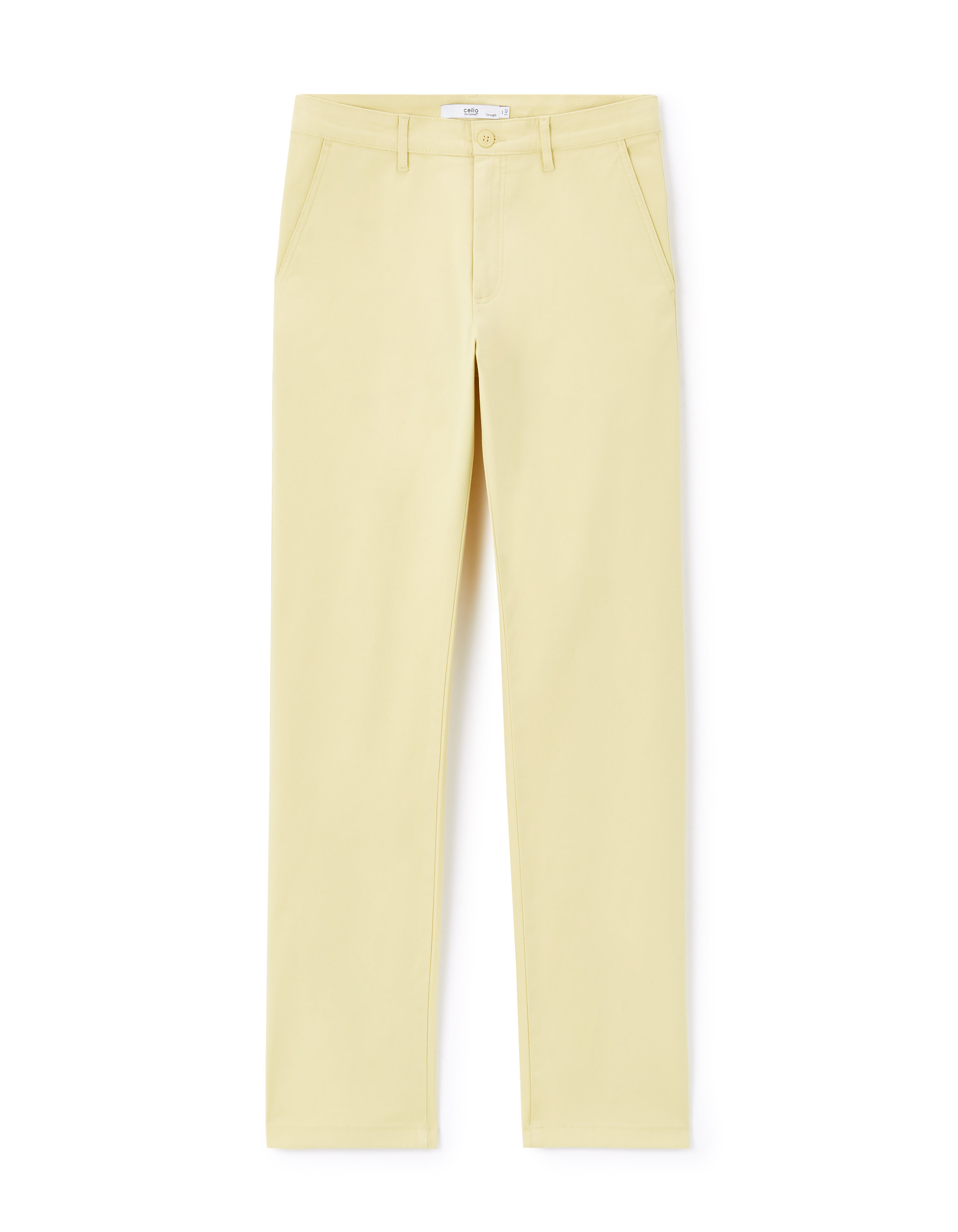 Chino coupe droite, en toile de coton stretch, solide et confortable pour vous suivre sans broncher.