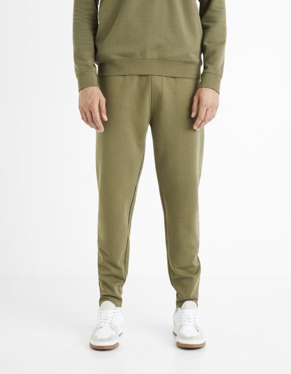 Le pantalon de jogging en molleton coton mélangé pour homme est idéal pour un look confortable, notamment grâce à sa taille élastiquée contrastée avec cordon. Il se porte tout simplement avec un t-shirt et un sweat, dans un esprit casual sport.