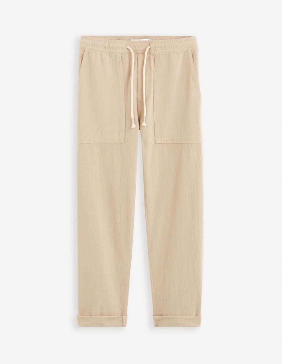 Pantalon Jogging beige casual pour homme, avec une taille élastiquée et un bas droit. Ce pantalon est le choix idéal pour allier confort et style décontracté. Sa coupe moderne et ajustée vous assure un look tendance et élégant en toutes occasions. Associe
