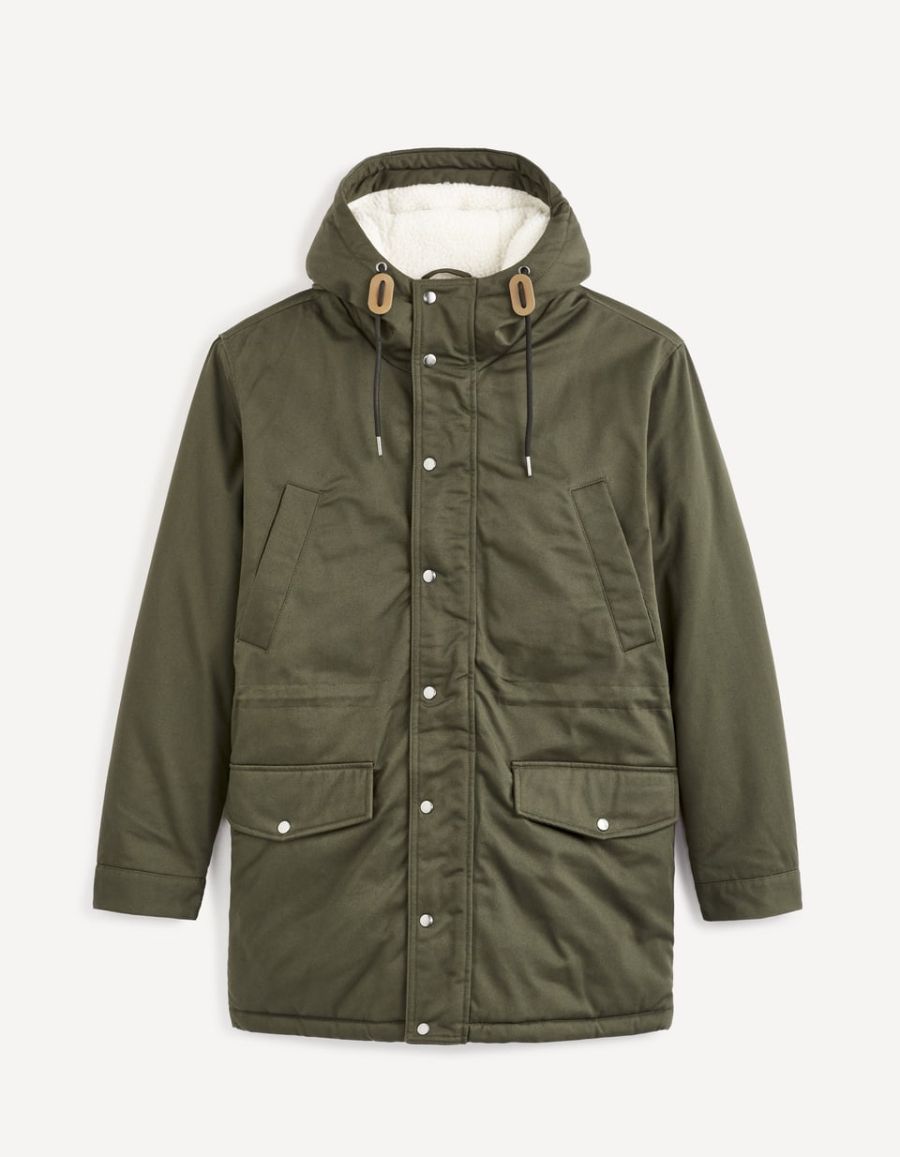 Parka à capuche doublé sherpa - kaki