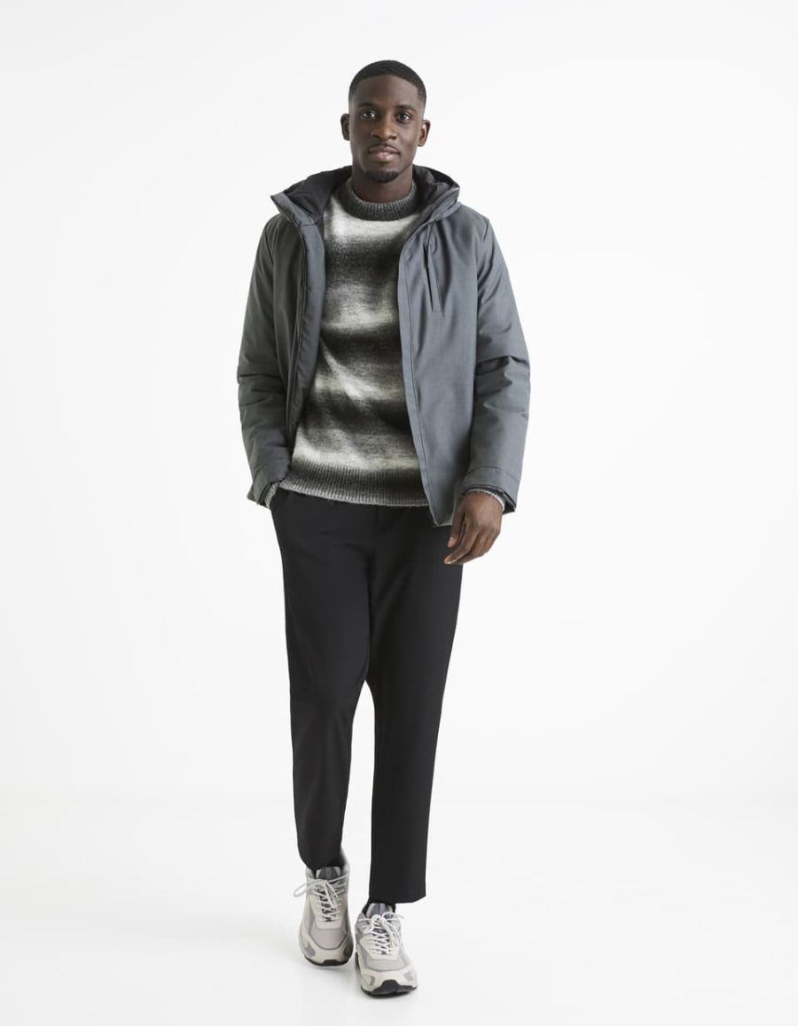 Vous porterez cette veste pour homme avec un look décontracté, notamment avec un pantalon chino, un pull en maille et des baskets. Pensée pour affronter les intempéries, la veste a une capuche avec des liens de serrage, un col montant et des bandes velcro