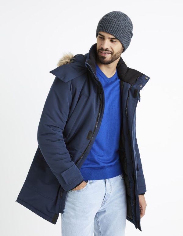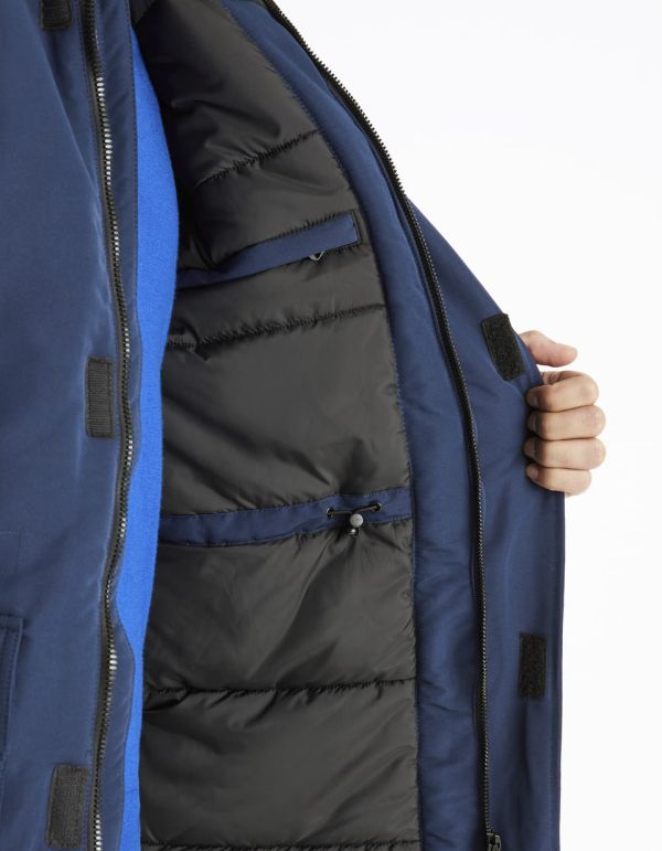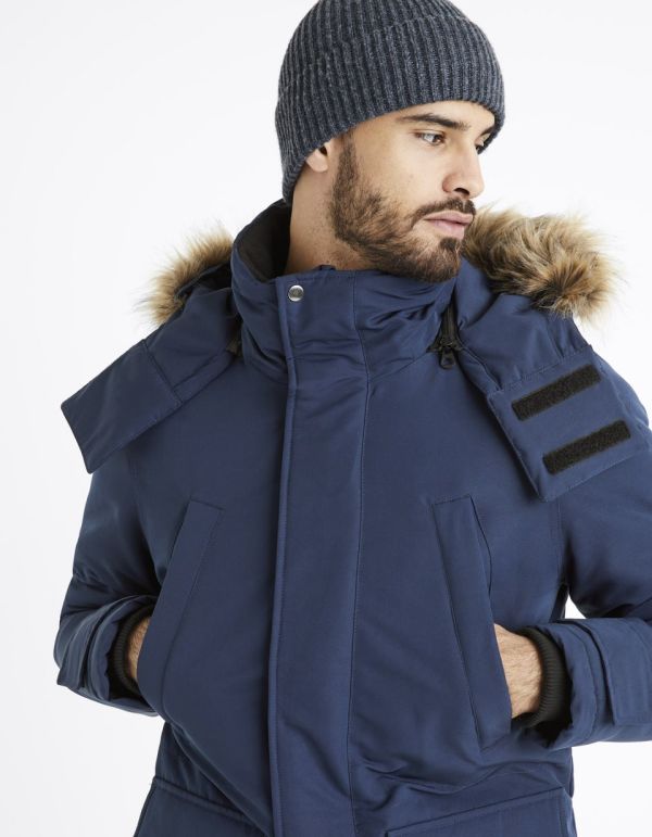 Toutes les fonctionnalités de cette parka homme vous aideront à résister aux grands froids. Sa capuche est entourée d'une imitation fourrure et complétée par un col montant. Le tissu est déperlant pour résister à la pluie et la parka est rembourrée avec d