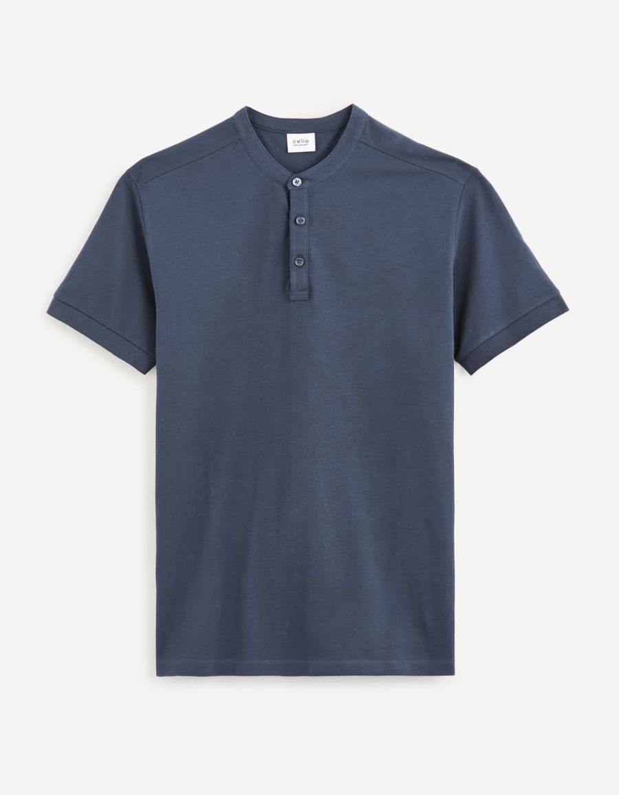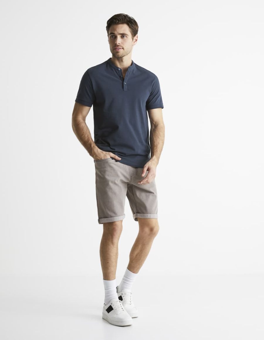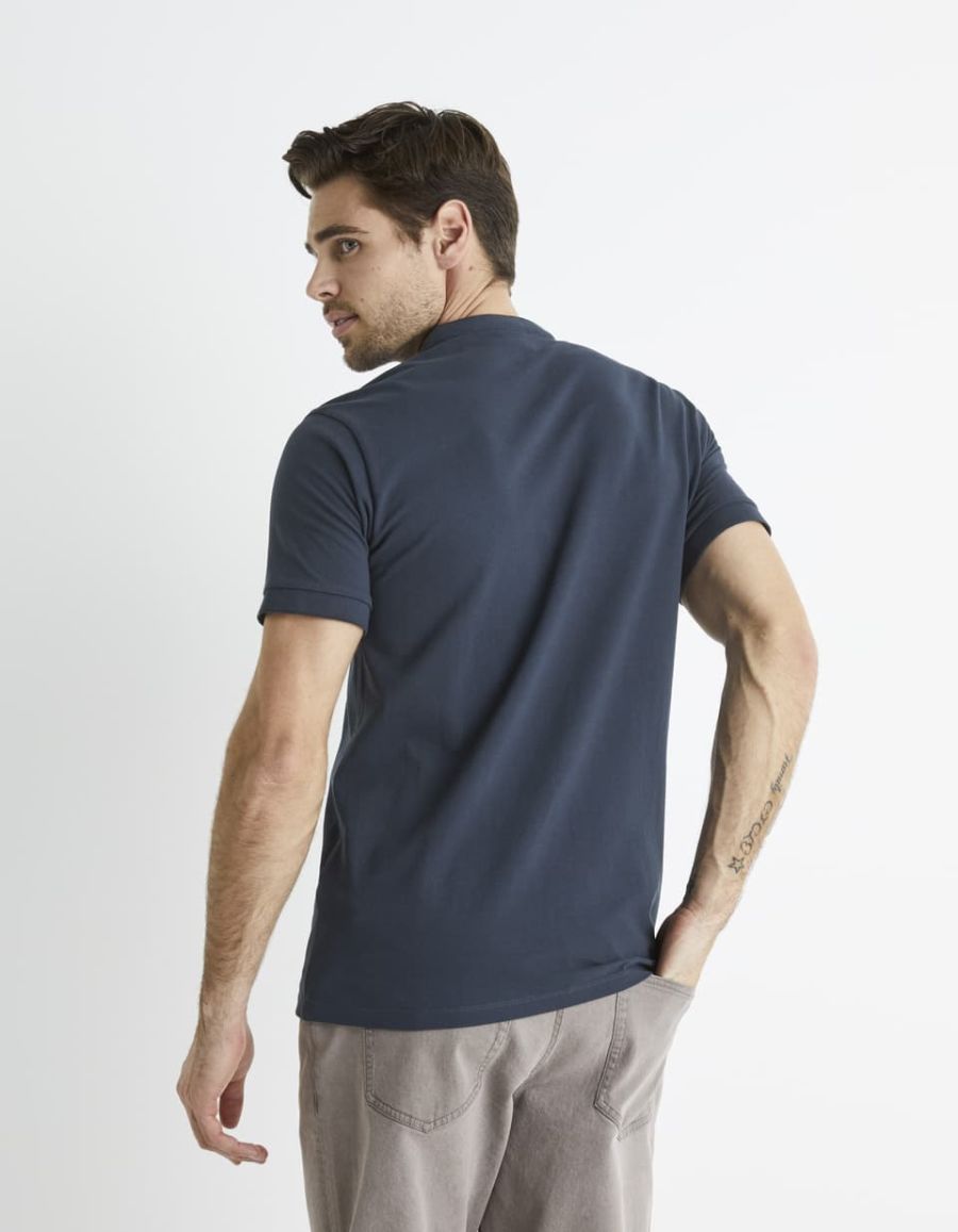Ce polo pour homme uni en coton stretch possède un col mao et des manches courtes. Questions détails, le col possède une bordure et une doublure de boutonnage contrastés. Le tissu micro piqué est en coton stretch. Il ira parfaitement avec un jean, un carg