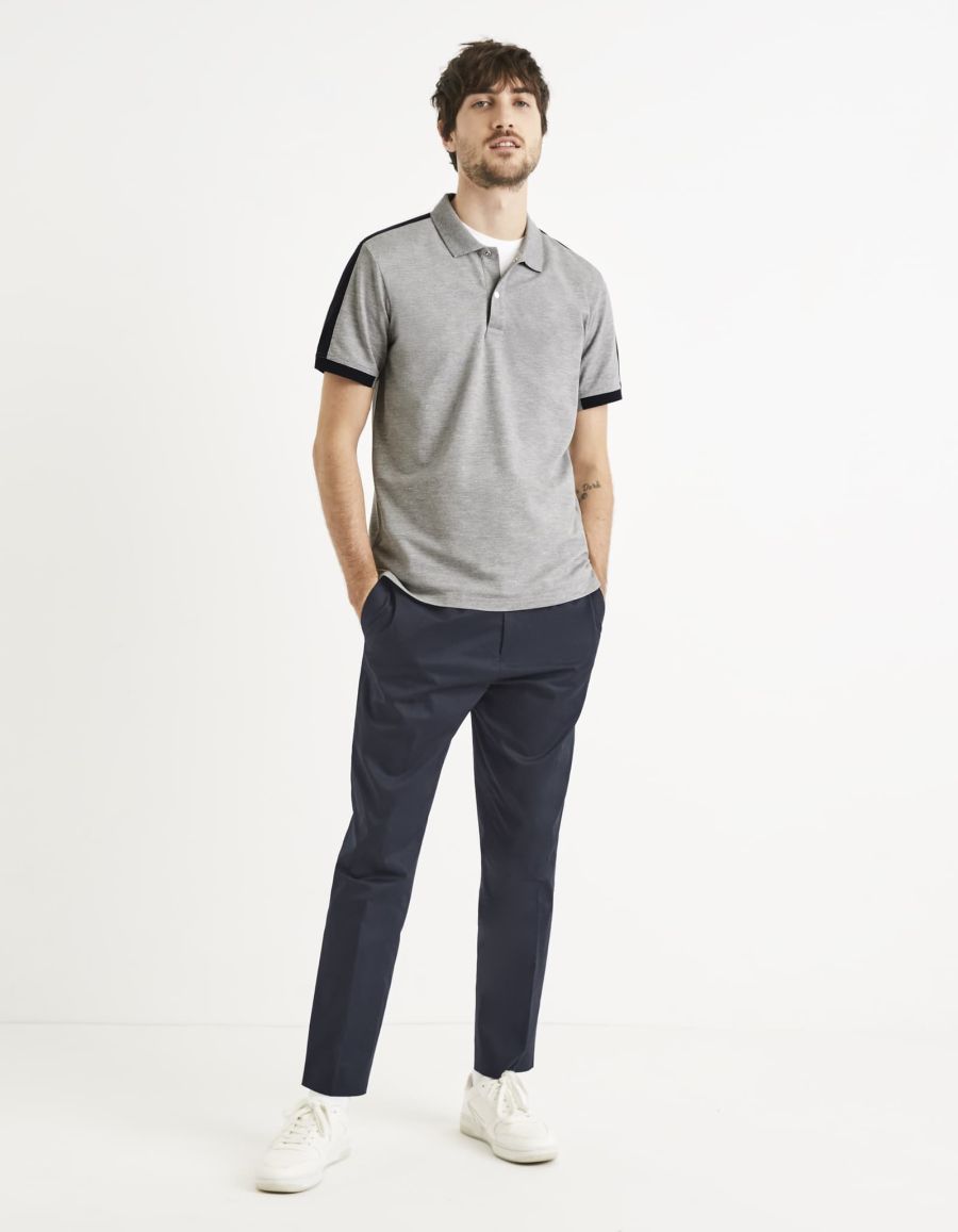 Les bandes contrastées sur les manches de ce polo pour homme apportent un élément original qui transformera une tenue. Facile à assortir et agréable à porter, il est en coton bio stretch mélangé. Les manches sont courtes et le col a deux boutons.