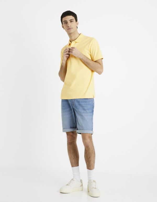 Vous porterez ce polo homme à manches courtes avec un pantalon chino, pour créer un look casual et confortable. Le polo est 100 % coton, avec une broderie étoile en ton sur ton au niveau de la poitrine. Son col est agrémenté de deux boutons.