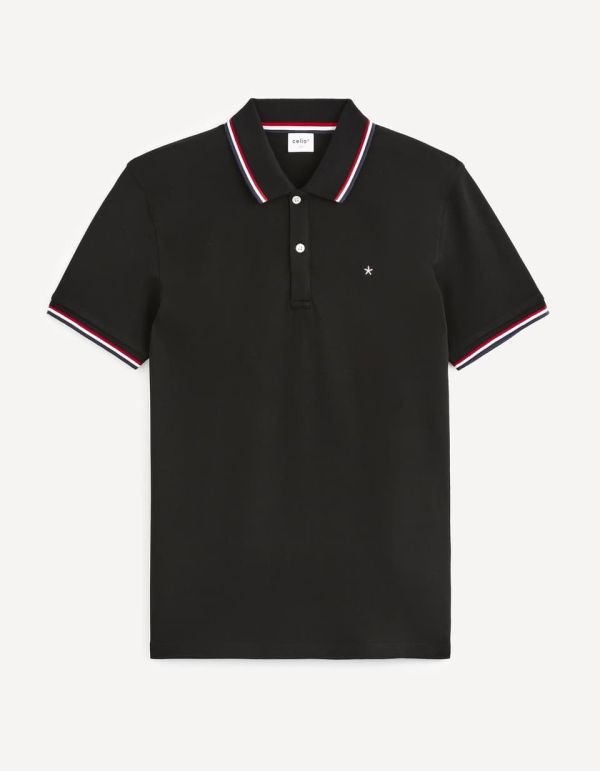 Ce polo piqué slim à manches courtes en coton supima extensible joue sur la tendance, avec ses rayures tricolores en liseré des manches et du col. Le logo brodé sur la poitrine offre une finition élégante. Associez-le à un pantalon droit et des derbies po