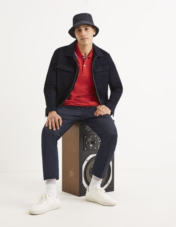 Ce polo piqué slim à manches courtes en coton supima extensible joue sur la tendance, avec ses rayures tricolores en liseré des manches et du col. Le logo brodé sur la poitrine offre une finition élégante. Associez-le à un pantalon droit et des derbies po