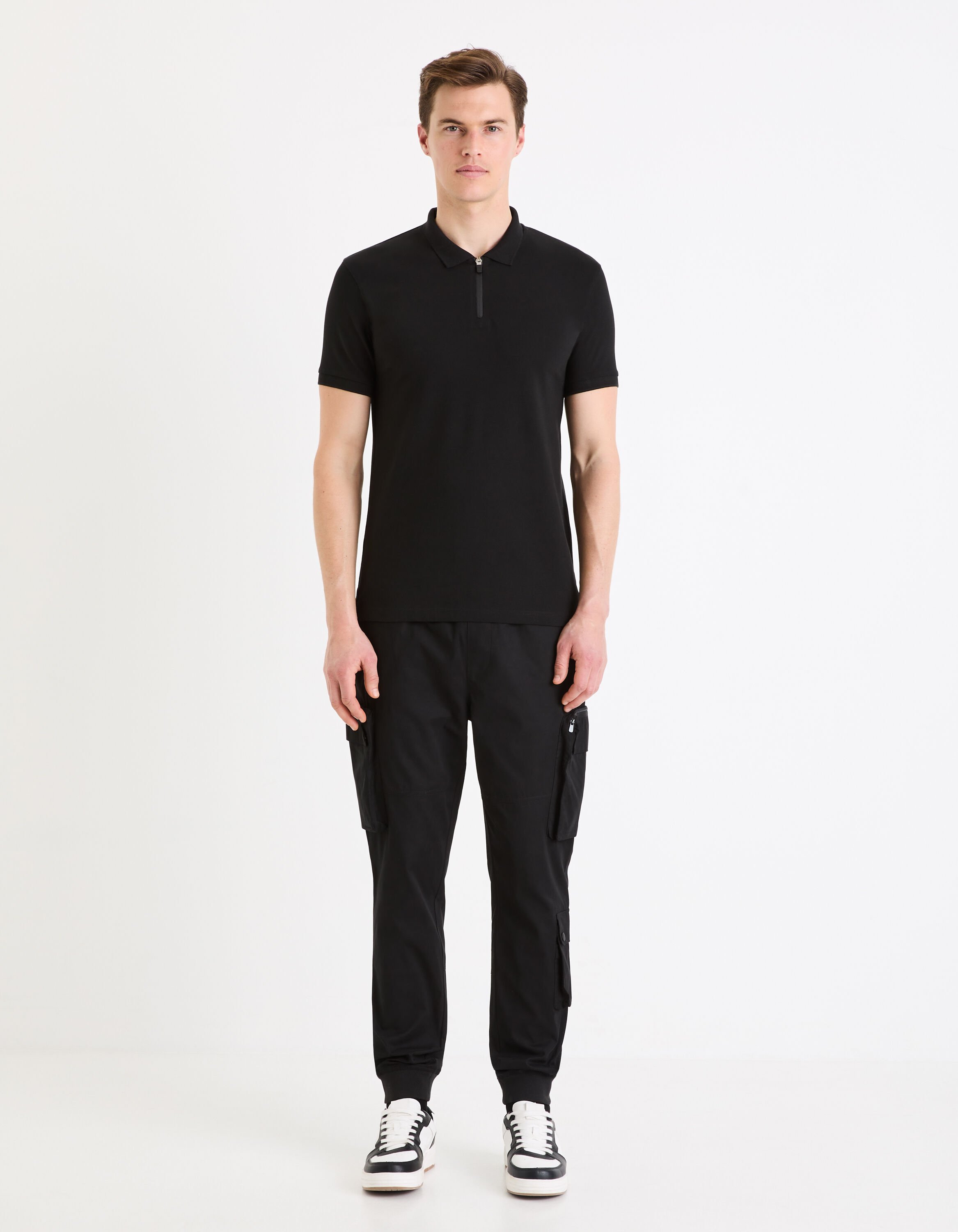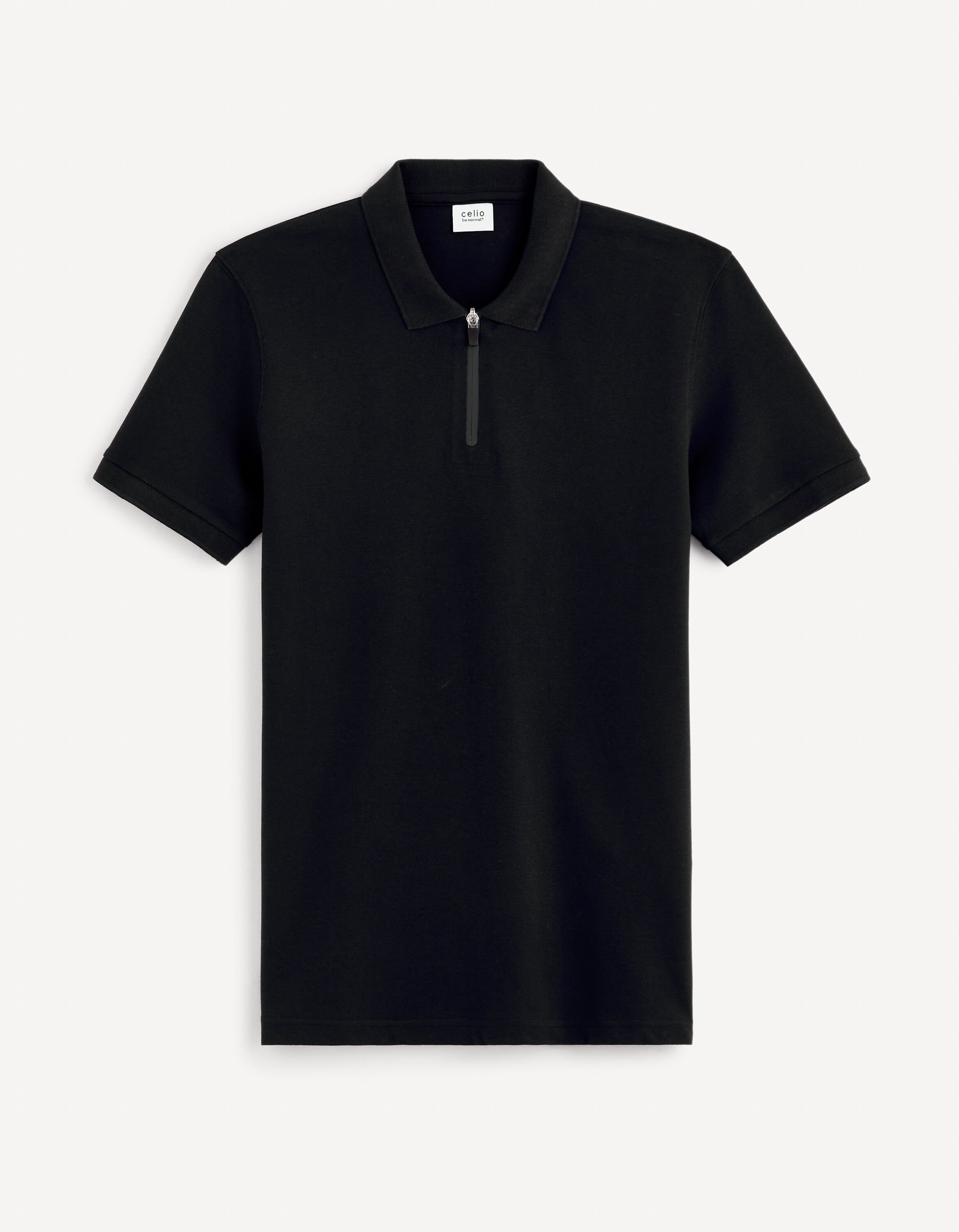 Polo regular col zippé en jersey - noir Polo regular col zippé en jersey - noir Nouveauté