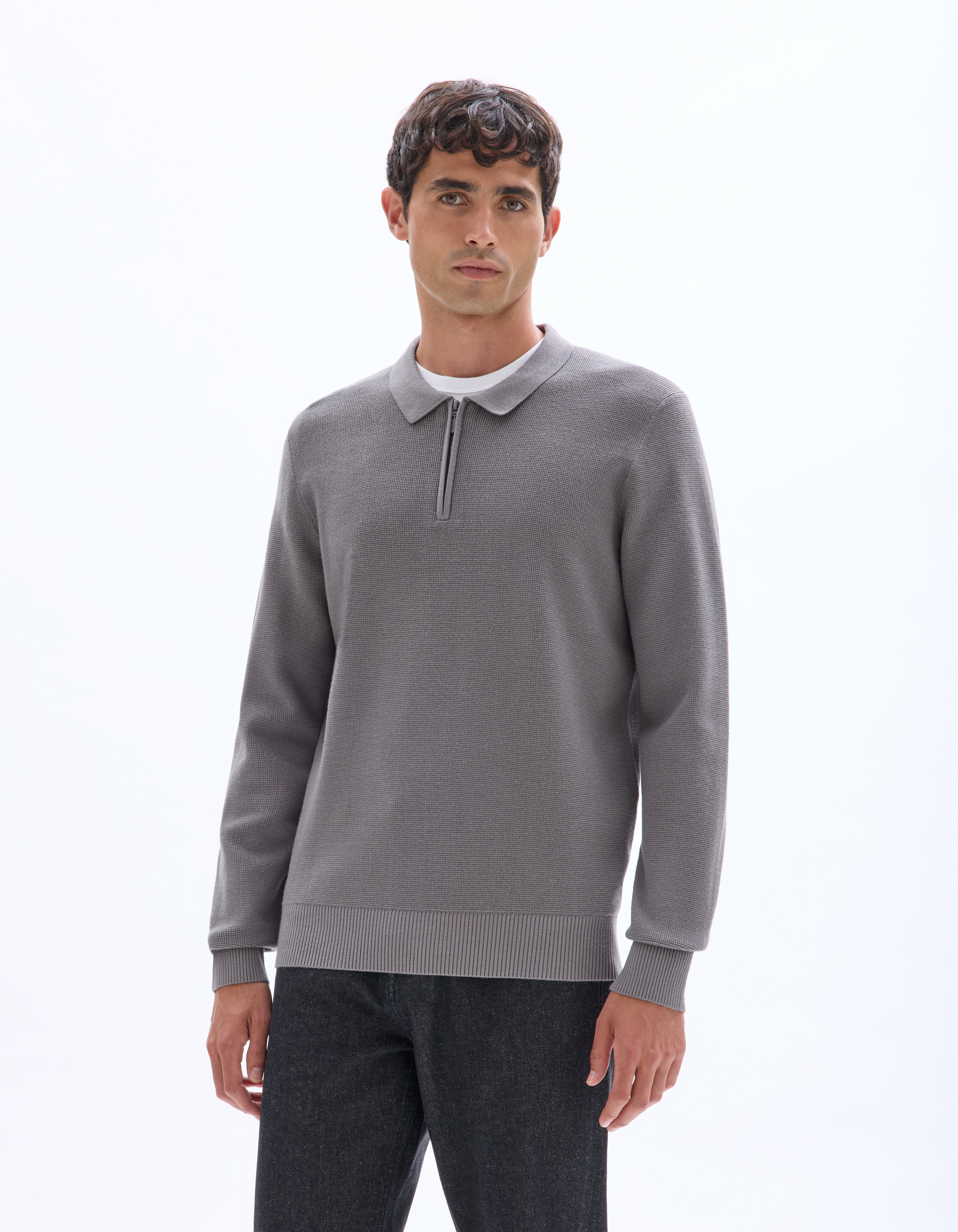 Polo regular en maille col zippé - sauge Polo regular en maille col zippé - sauge Nouveauté