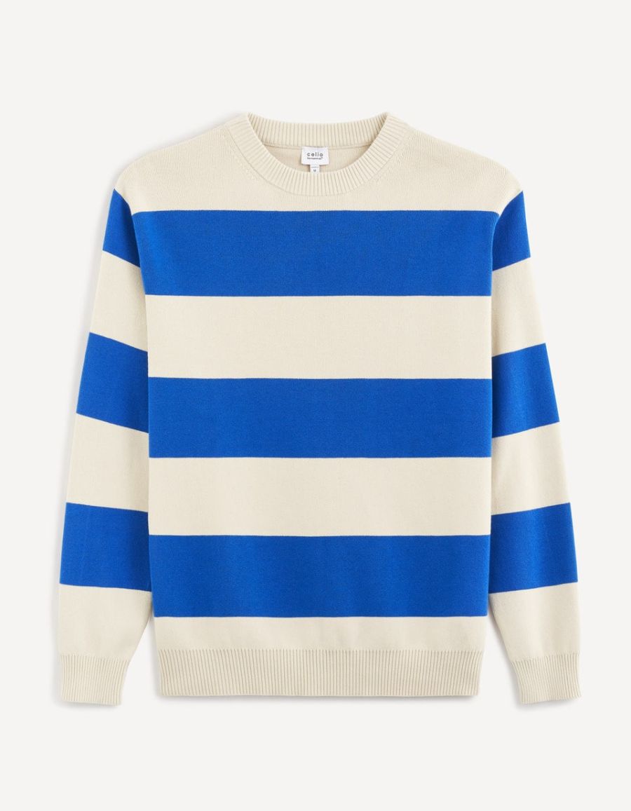 Adoptez ce pull col rond 100% coton pour homme à rayures esprit "color block", la grande tendance du vestiaire masculin cette année. Il sera parfait avec un jean ou un cargo et une paire de baskets blanches, pour une silhouette décontractée.