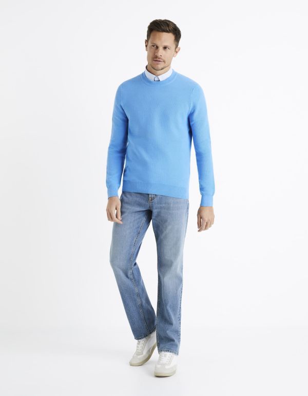 Notre pull col rond 100% coton est au meilleur prix pour un meilleur train de vie. Un bon pull, quand on l'a trouvé, on refuse de s?en débarrasser. Pour éviter de l'user trop vite à force de tout le temps le porter, on l'achète dans plusieurs coloris. Ave