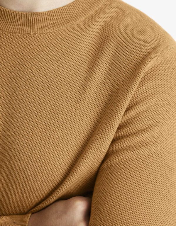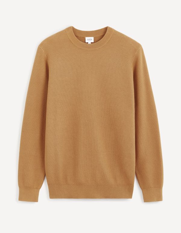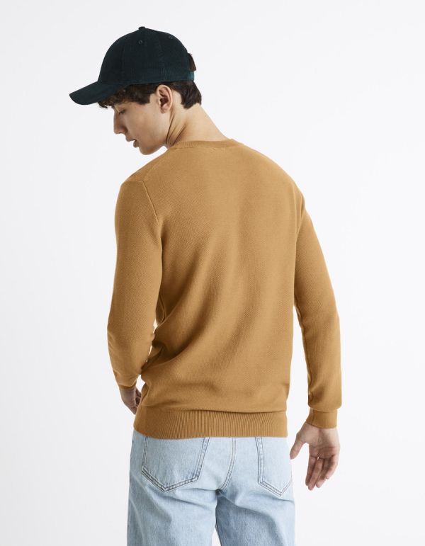Pull col rond 100% coton - jaune moutarde