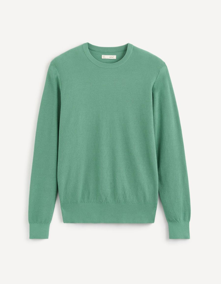 Ce pull pour homme mérite sa place parmi les basiques du vestiaire. À col rond, il est confectionné en 100% coton organique. Facile à assortir grâce à sa teinte unie, ce pull est terminé par des bords en tricot extensible.
