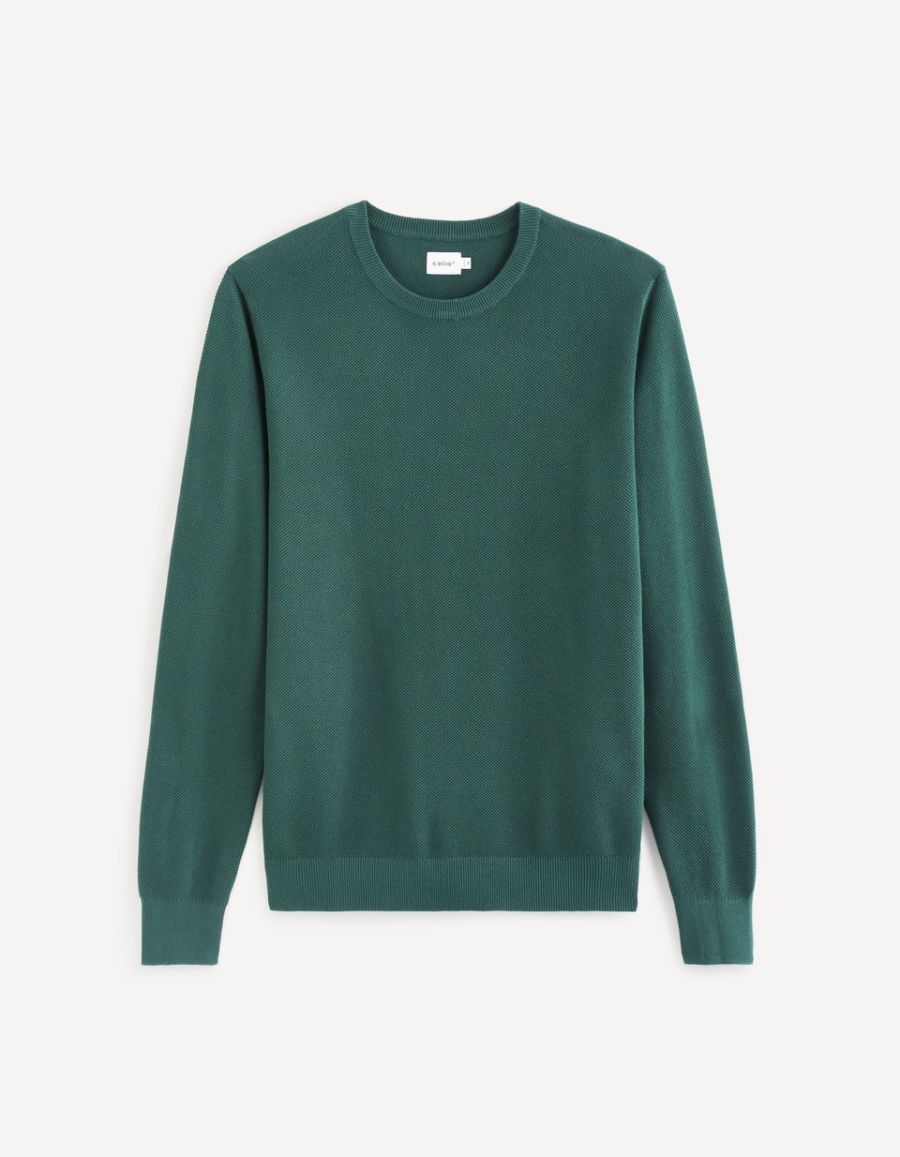 Ce pull pour homme mérite sa place parmi les basiques du vestiaire. À col rond, il est confectionné en 100% coton organique. Facile à assortir grâce à sa teinte unie, ce pull est terminé par des bords en tricot extensible.