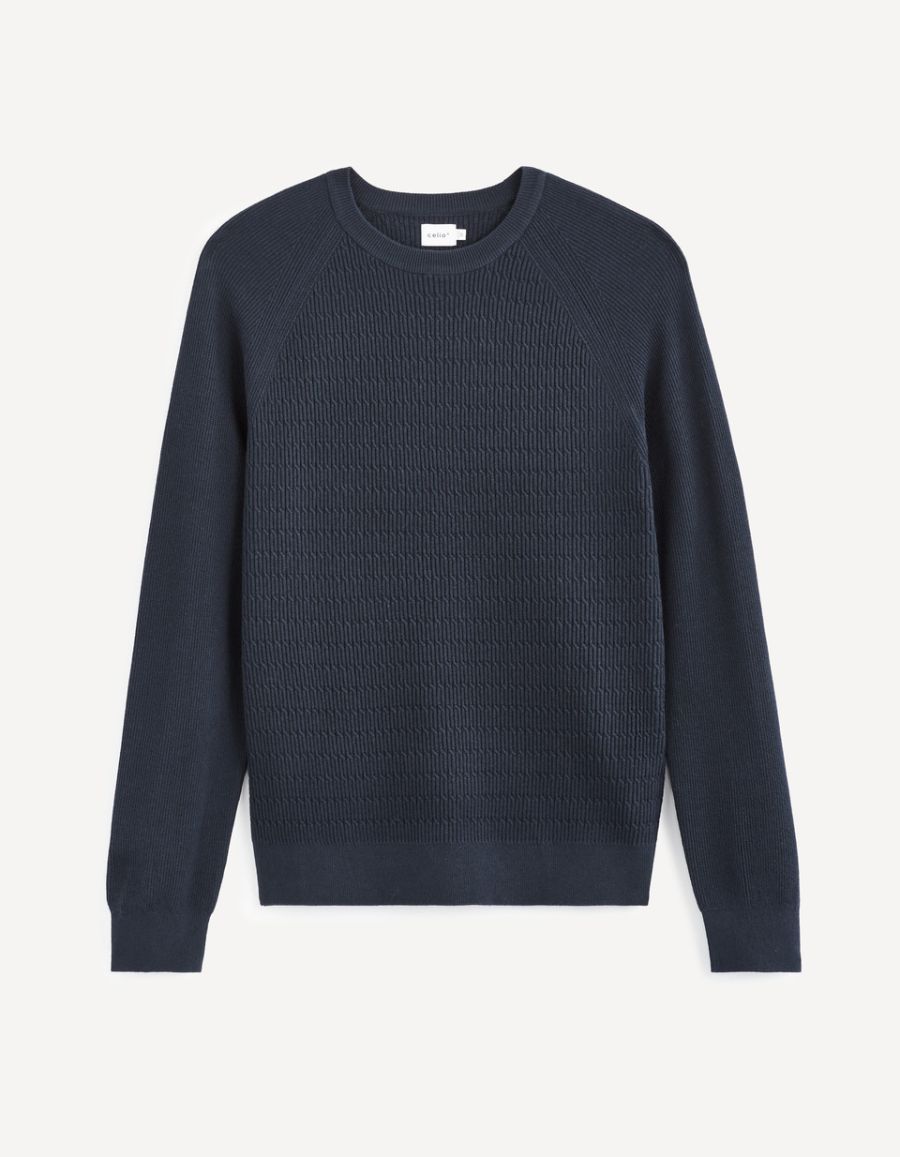 Pull gaufré col rond regular en coton mélangé - anthracite Pull gaufré col rond regular en coton mélangé - anthracite Nouveauté