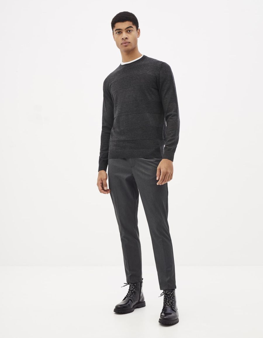Le pull 100 % laine est un indispensable de la garde-robe masculine car il peut accompagner de nombreux looks. Ce pull pour homme a un col rond et un motif en bandes discrètes qui apporte le détail d'originalité. Il ira parfaitement avec un jean ou un chi