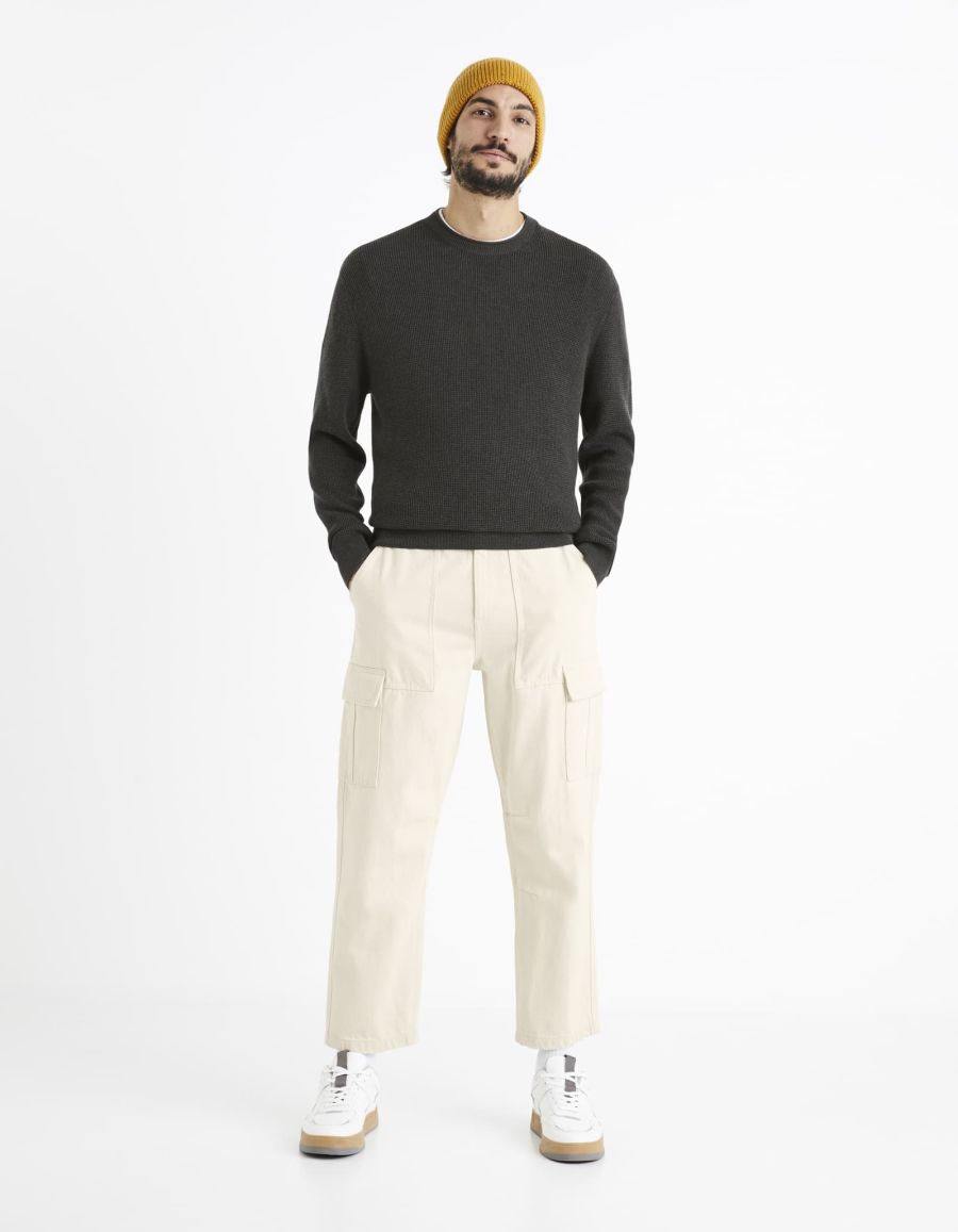 Ce pull pour homme à col rond en coton mélangé, vous habillera avec élégance et simplicité. Son tissu gaufré lui apporte une finition soignée qui fait la différence. Il se porte avec un jean ou tout autre pantalon basique. Matière gaufré est une alternanc