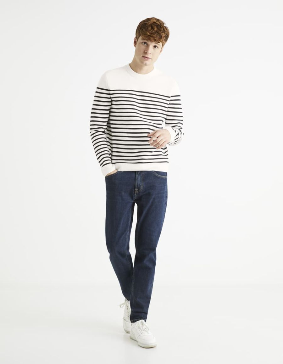 Considéré comme une pièce intemporelle du vestiaire masculin, le pull marin n'a de cesse séduire. Aussi tendance que confortable, ce pull basique col rond pour homme en coton mélangé sera fonc facile à porter au quotidien.