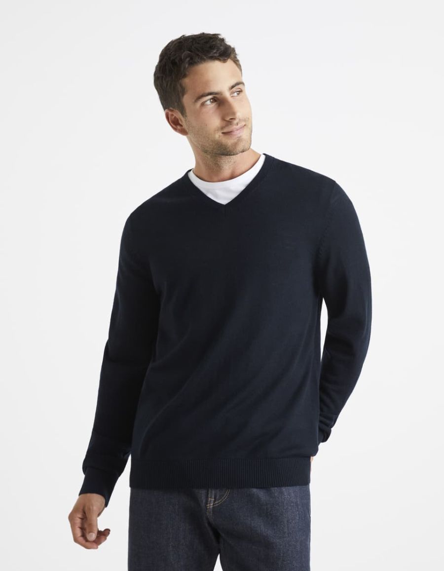 Le col en V est un basique à la fois cool et facile à assortir. Ce pull pour homme pourra ainsi être porté avec un jean, tout simplement sur un t-shirt. En plus, grâce à sa fibre thermorégulante, il pourra se porter toute l'année. La composition du pull e
