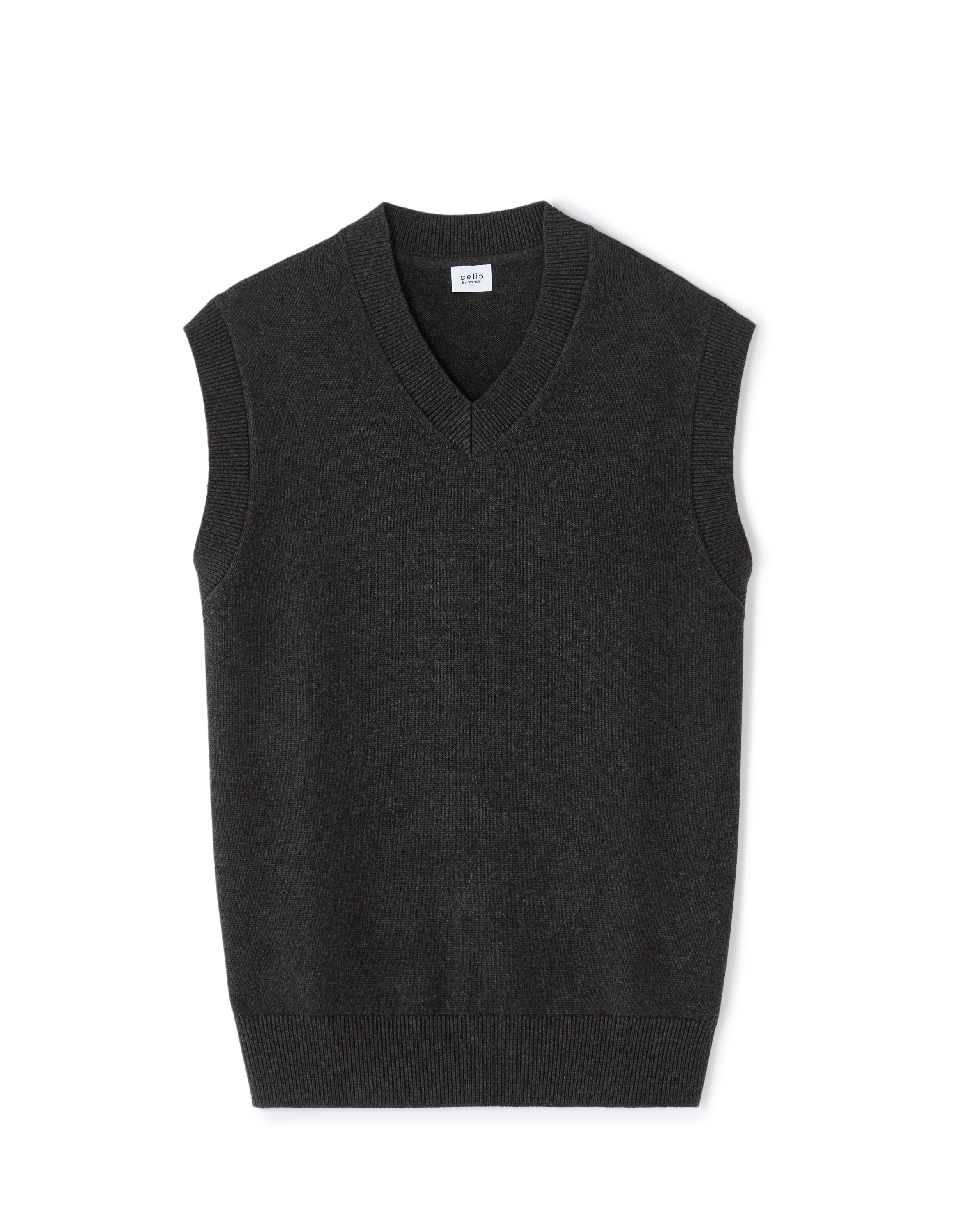 Pull sans manches col V 100 % coton - anthracite