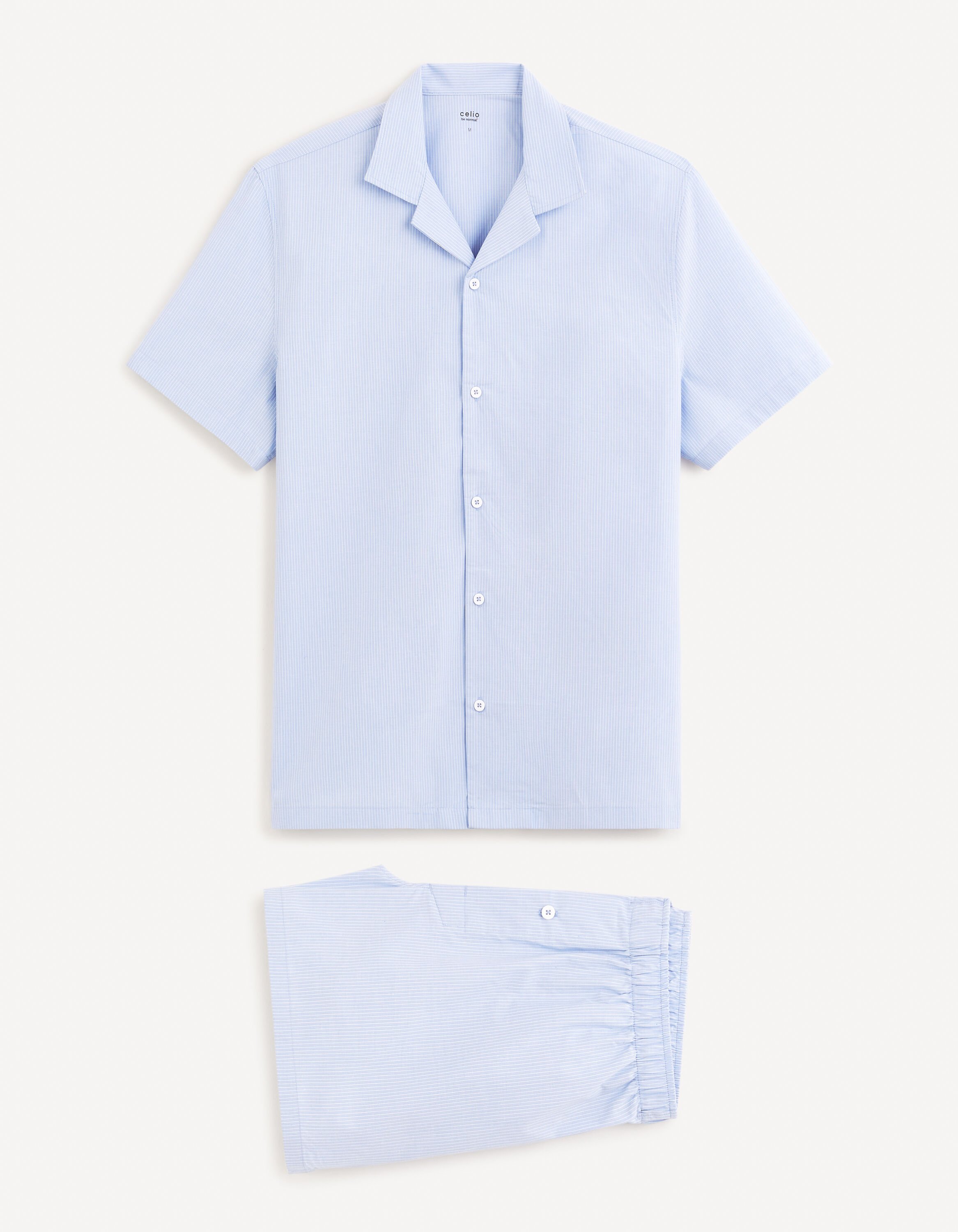 Pyjama chemisette et caleçon 100% coton - bleu clair