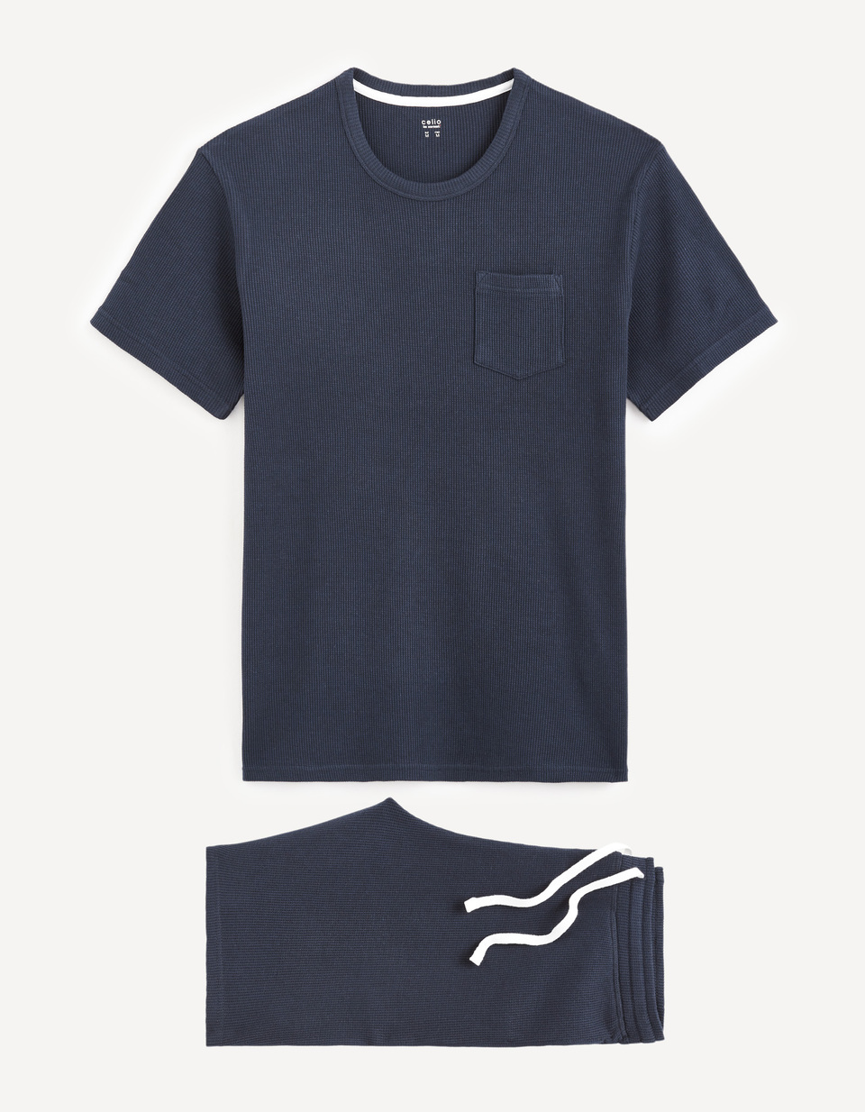 Pyjama pour homme manches coeurtes marine avec poche plaquée et short en jersey.T-SHIRT: 100% coton BAS: 100% coton