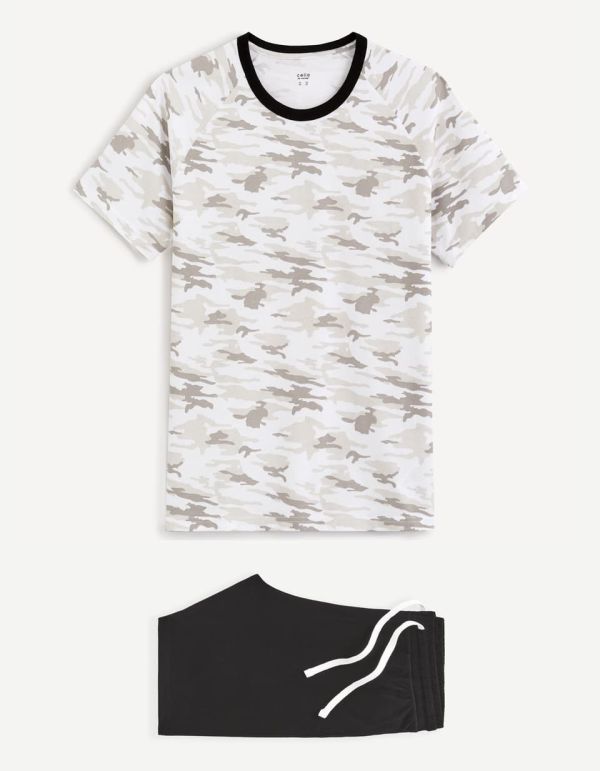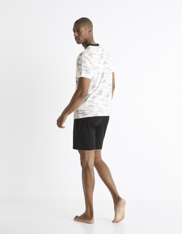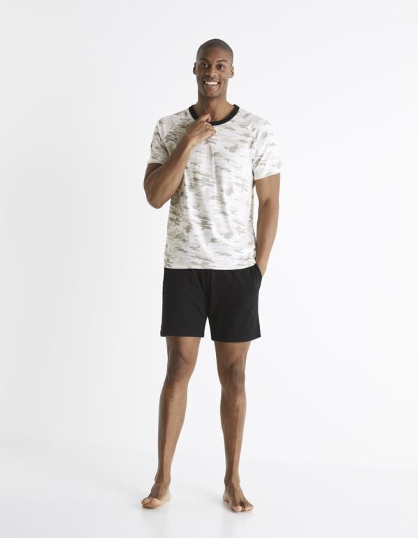 Pyjama manches courtes imprimé camouflage et bermuda uni en maille 100% coton. Parfait pour chiller à la maison ou faire des grasses matinées le dimanche.