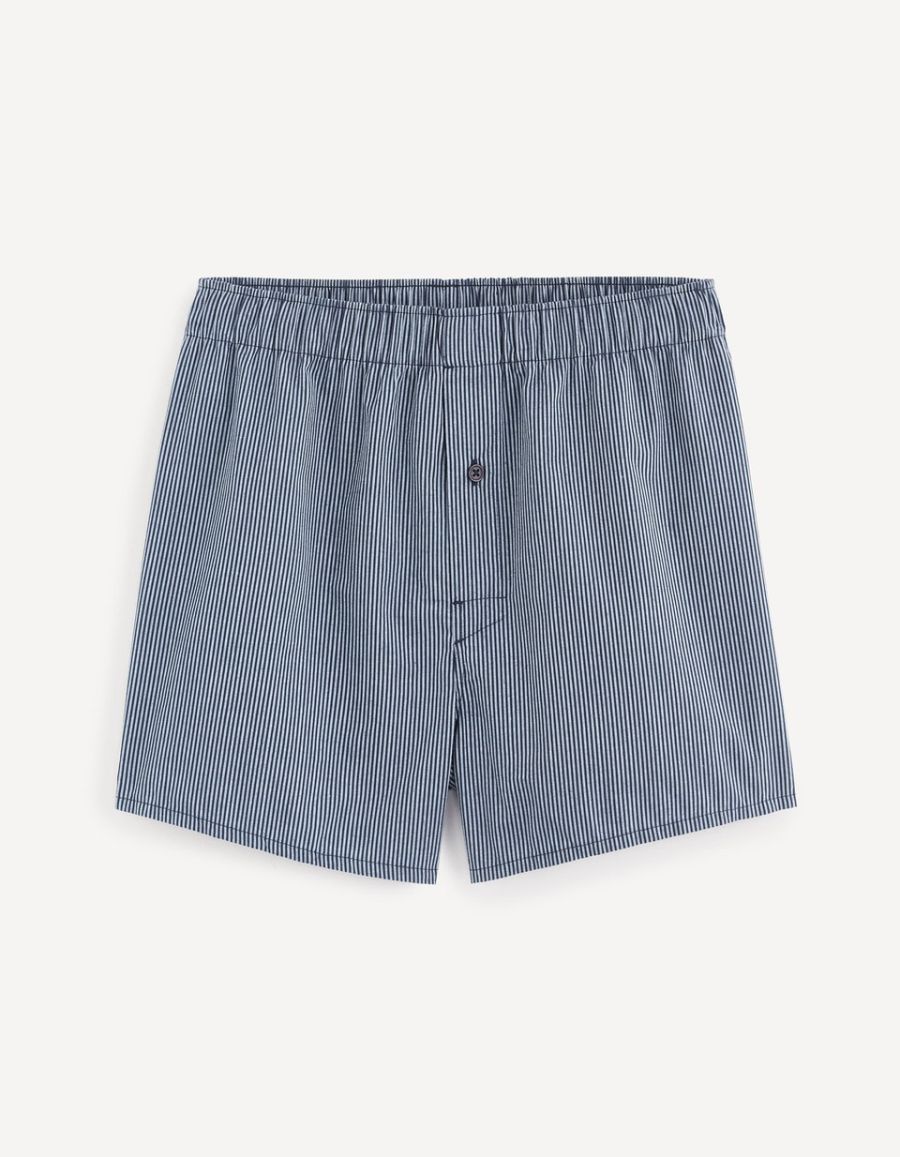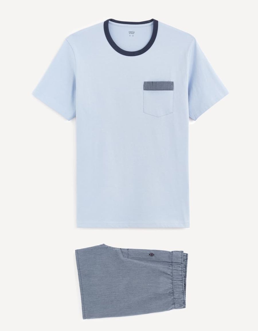 Pyjama pour homme avec t-shirt manches courtes et bermuda court type caleçon chaîne et trame rayé, composition 100% coton.